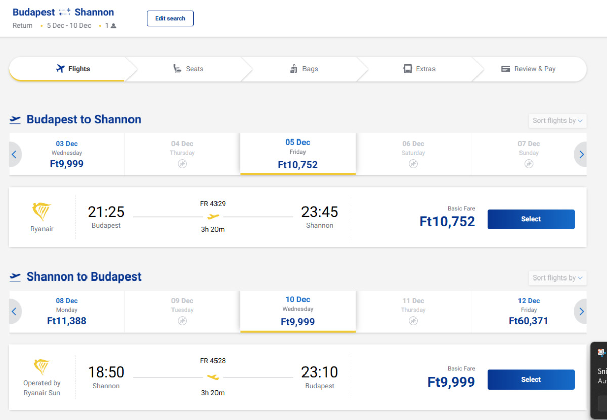A téli hónapokban olcsón repülhet Budapestről az írországi Shannonba a Ryanairrel.