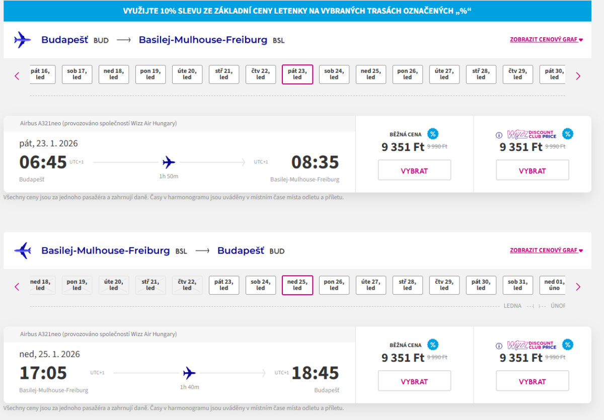 Budapestről a svájci Bázelbe a Wizz Air légitársasággal utazhat. Az időpontok januártól márciusig elérhetőek, és a választék igazán széles - minden nap repülnek.