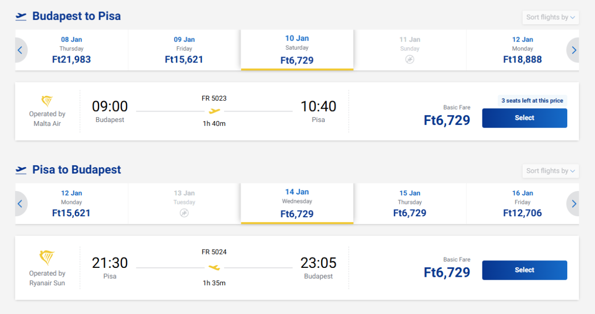 Menjen Olaszországba akár januárban is - olcsó, kényelmes és ideális repülési idővel. A Ryanair olcsó retúrjegyeket kínál Budapestről Pisába 13 458 huf-ért.