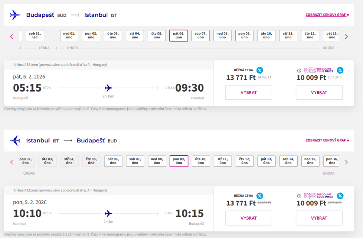 Wizz Air Budapestről Isztambulba kedvező áron 27 542 huf, és ha WDC tag vagy, akkor még csak 20 018 huf-ot fizetsz.