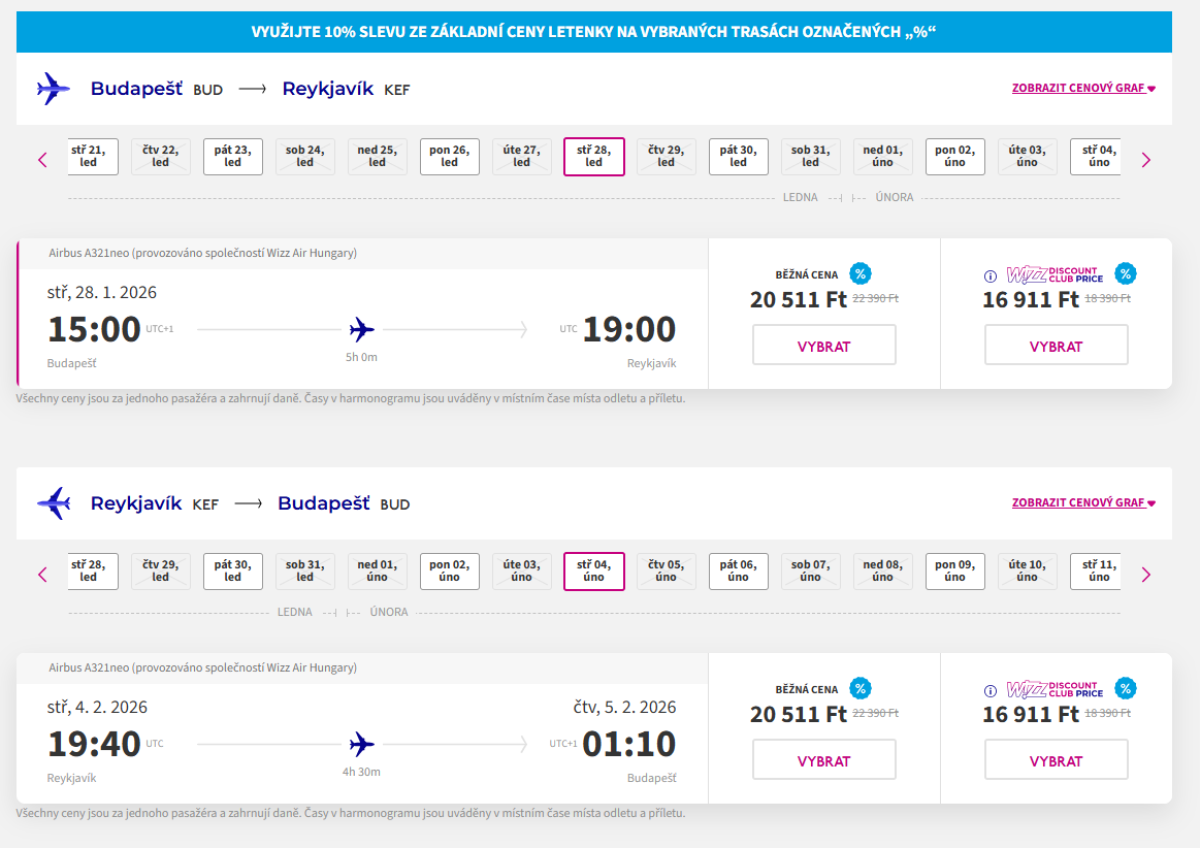 WDC-tagsággal a retúrjegyek 33 822 huf-tól vásárolhatók meg.