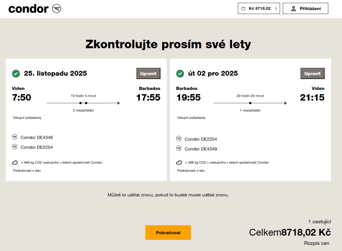 A Condor légitársaság jelenleg 361 eur 461 eur2 5.11.-2.12. és 25.11.-9. 12. között 361 eur-ért kínál menettérti jegyeket Bécsből Barbadosra.