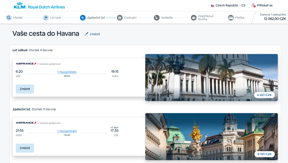 - Az Iberia 12 312 CZK-ért, egynapos madridi átszállással.