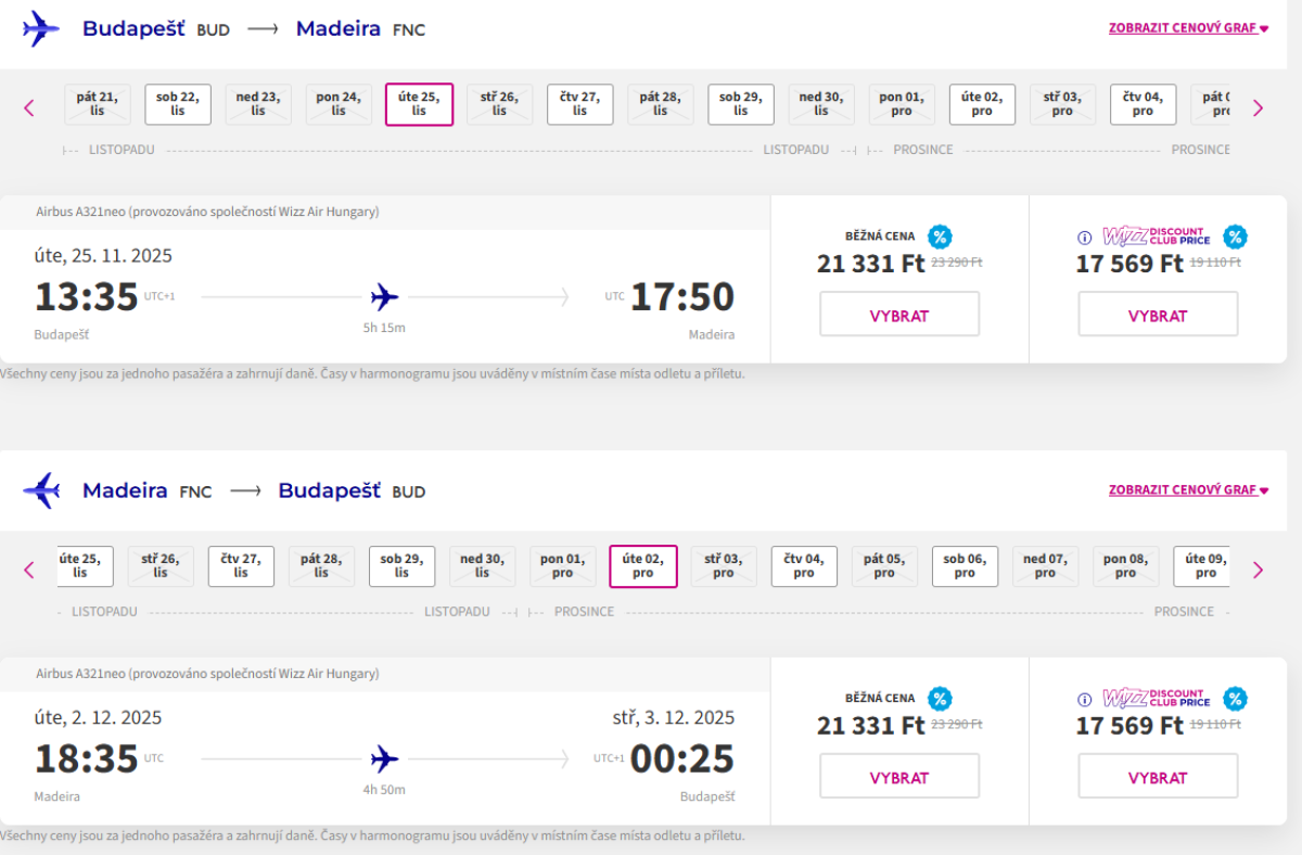 Használja ki a Wizz Air oda-vissza repülőjegy-ajánlatát, és tervezze meg téli nyaralását a festői Madeira szigetén. A Budapestről induló közvetlen járatokkal gyorsan és kényelmesen juthat el erre a gyönyörű szigetre.