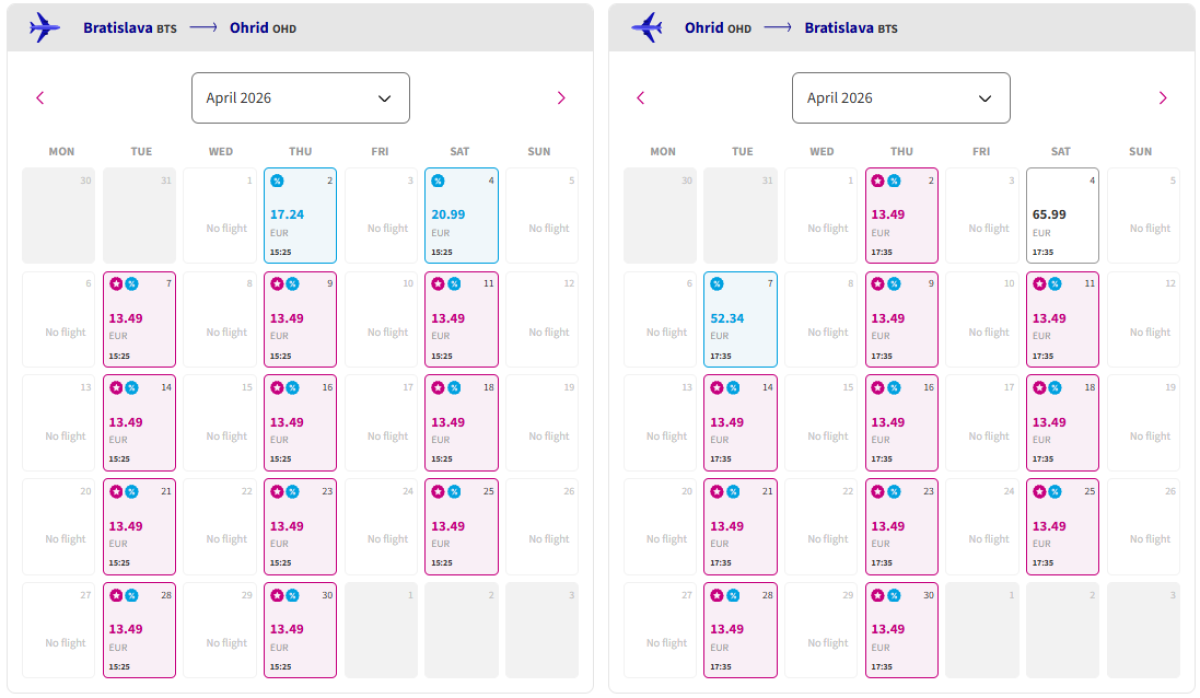 A legtöbb dátummal kombinálható úti célok között szerepel az észak-macedóniai Ohrid és Szkopje repülőtere, valamint az albániai Tirana.
