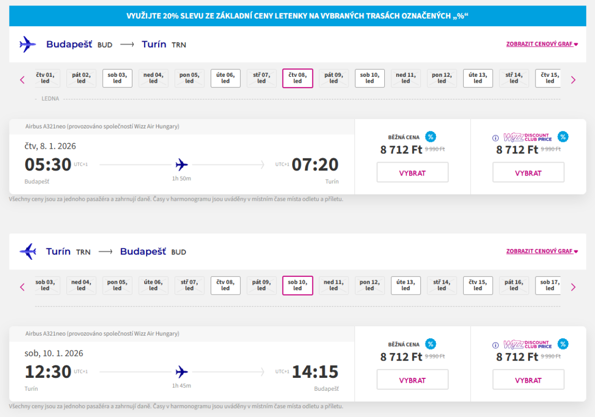 A legolcsóbb menettérti jegyek január 8-10. között 17 424 huf-ért kaphatók.