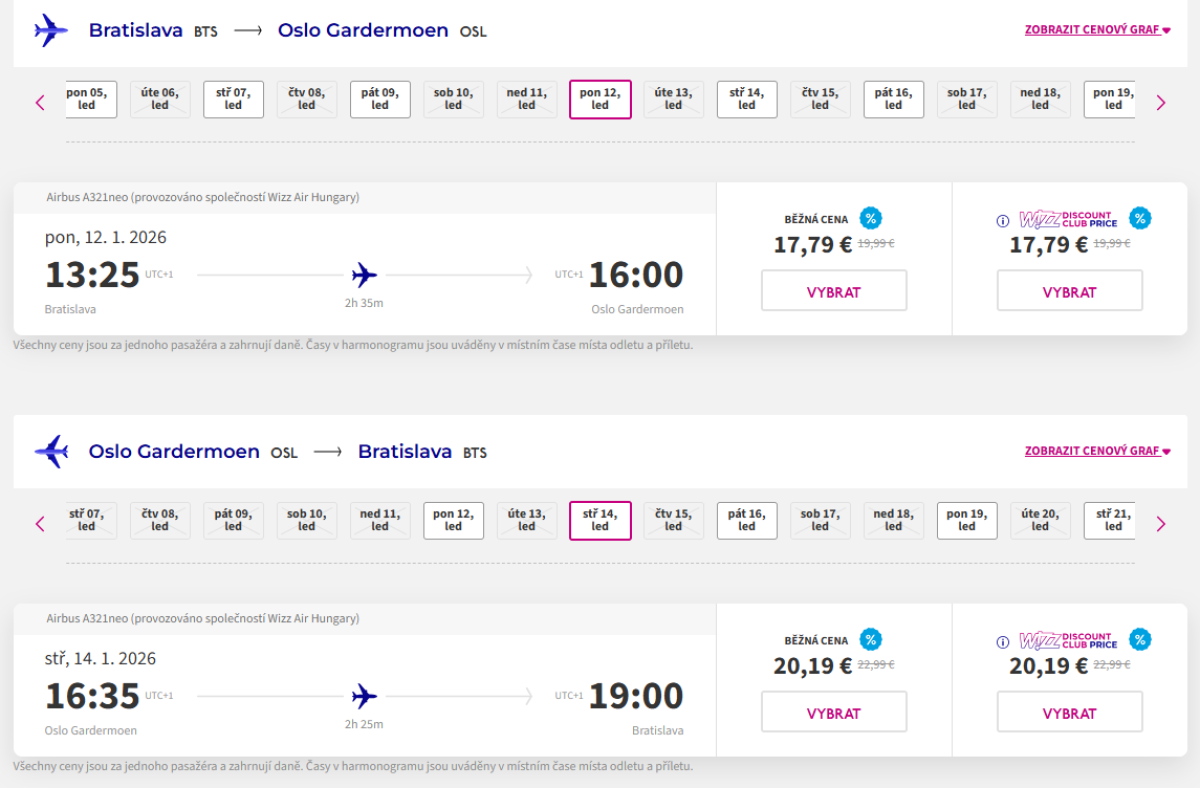 A Pozsonyból Oslóba szóló menettérti jegyek már 38 eurótól megvásárolhatók. A legjobb időpontok januárban és februárban érhetőek el.