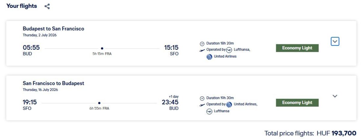 San Francisco Budapestről a Lufthansa járatával