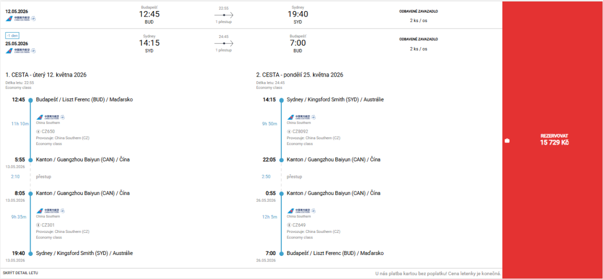 A China Southern Airlines kedvező áron kínál menettérti járatokat Budapestről 3 ausztrál városba.