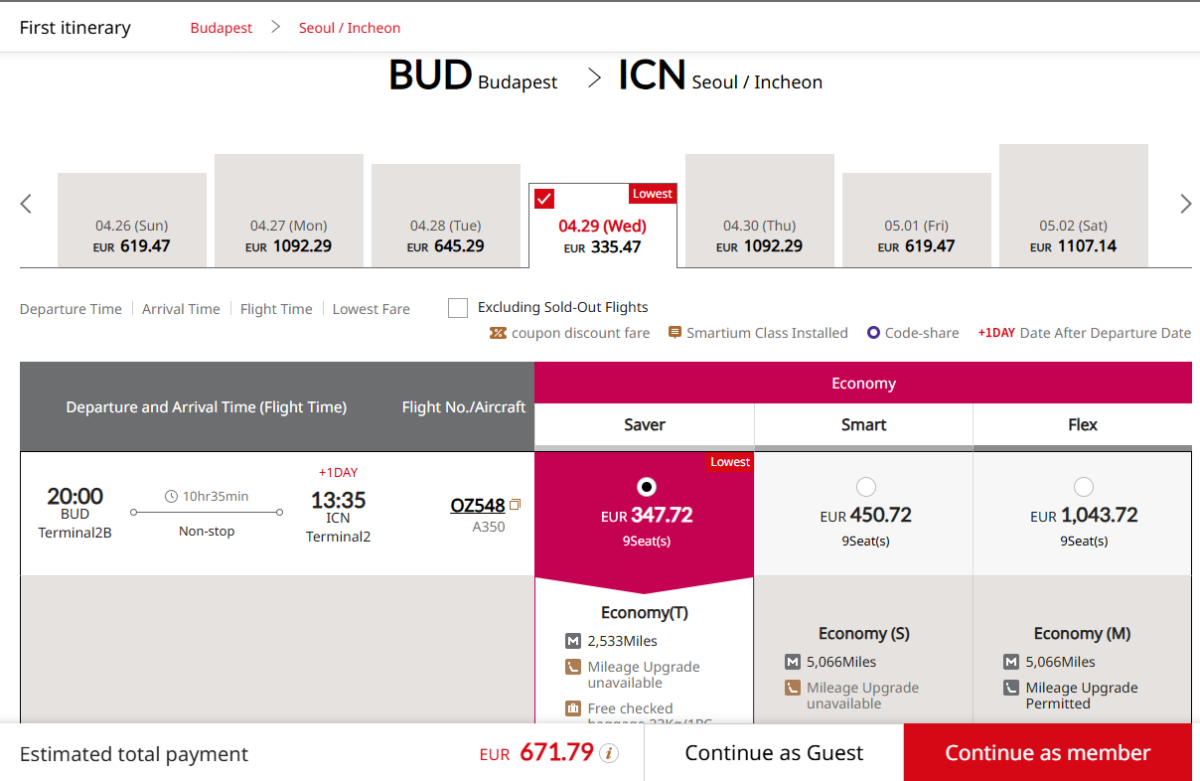 A Budapestről a dél-koreai Szöulba tartó útvonalon érdekes ajánlat jelent meg az Asiana Airlines közvetlen járataira. Menetjegyek már 649 eurótól kaphatók, különösen az áprilisi/májusi időpontokra.