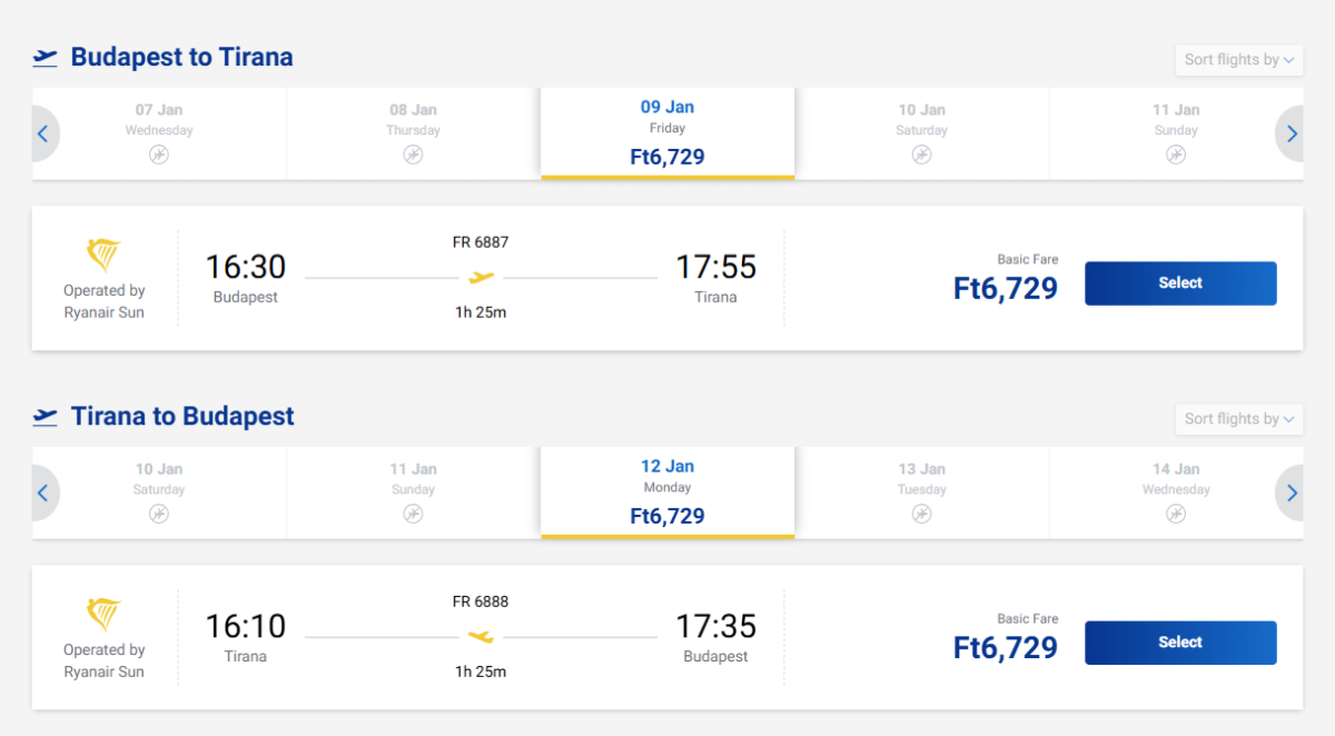 A Ryanair több remek ajánlatot is kínál egy januári, Budapestről induló tiranai hosszú hétvégére. A retúrjegyek már 13 458 huf-ért megvásárolhatók.