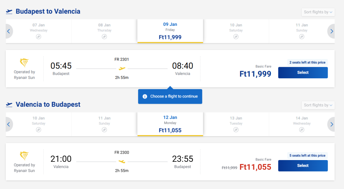 Menetjegyek Budapestről Valenciába januárban már 23 054 huf-ért.