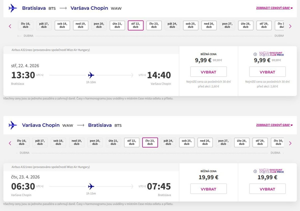 A Wizz Air olcsó retúrjegyeket kínál Pozsonyból Varsóba, amelyek áprilistól októberig elérhetők. Az időpontok hosszú hétvégékre is jól jönnek.
