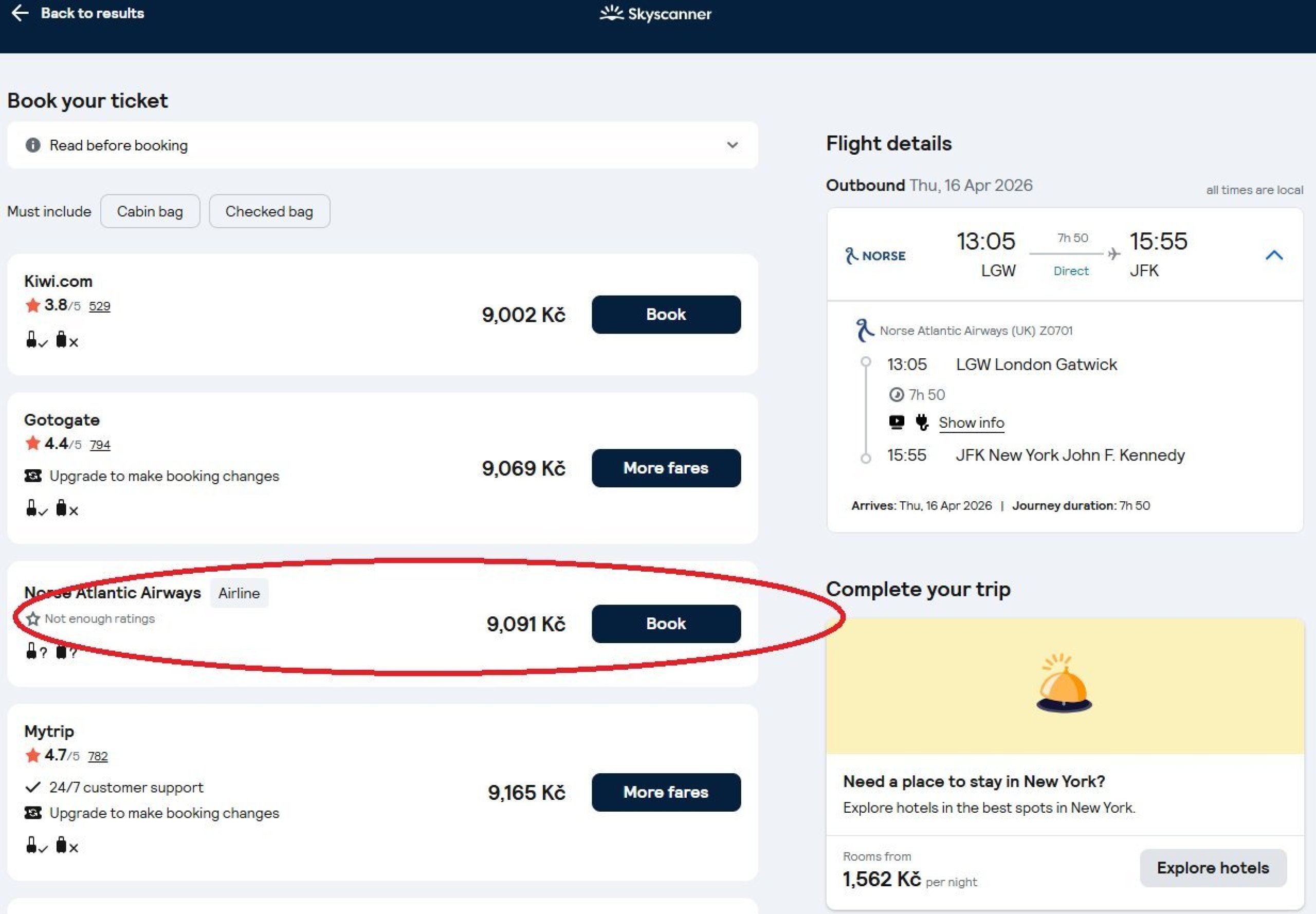 Az általános élmény tehát nagyban függ attól, hogy valójában hol vásárolja meg a jegyet - vagyis, hogy melyik viszonteladóhoz kattint át a Skyscannerről.