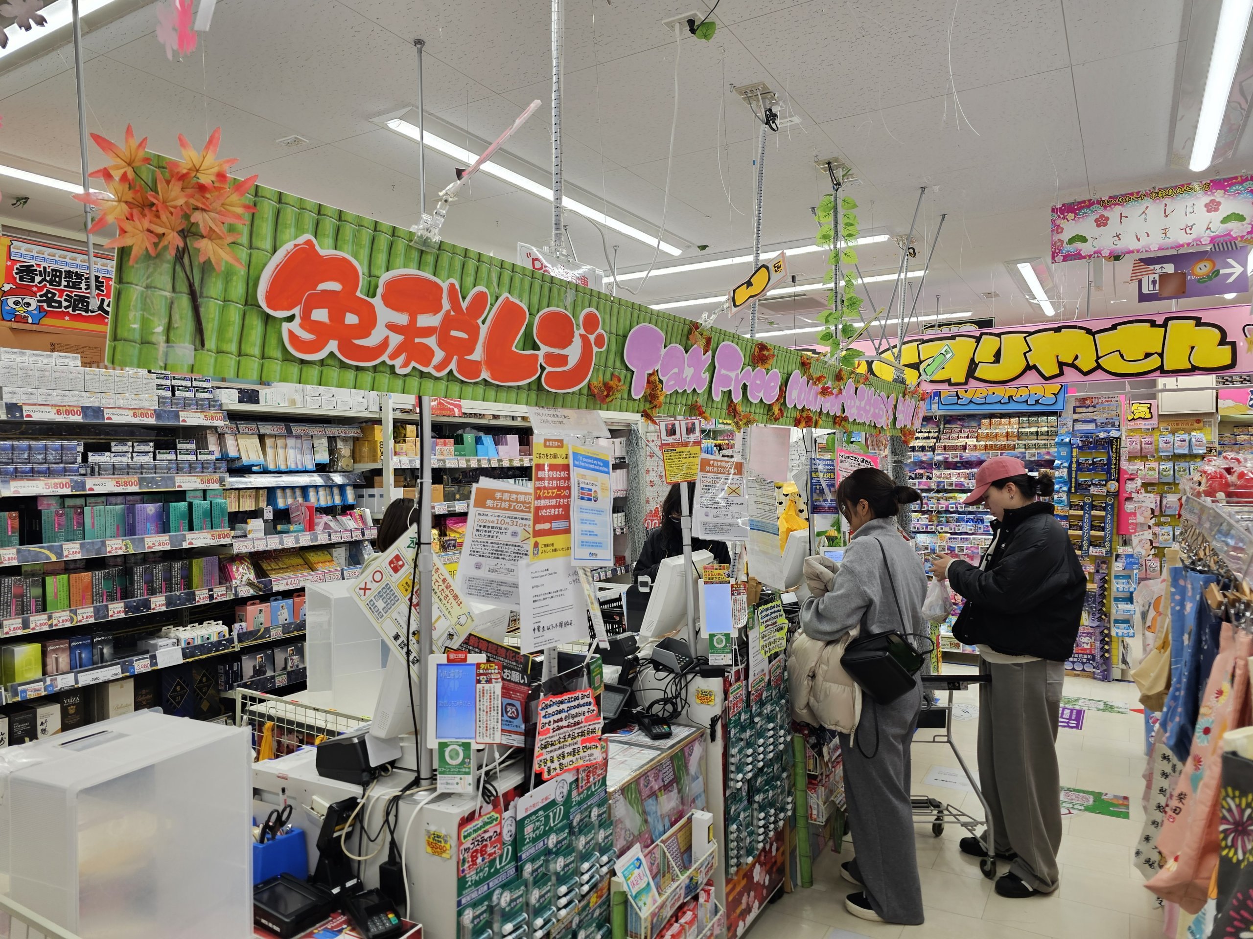 Miután fizetett, a személyzet egy speciális műanyag zacskóba teszi az árut - mivel hivatalosan nem használhatja fel azokat az árukat, amelyekre Japánban adókedvezményt igényel.