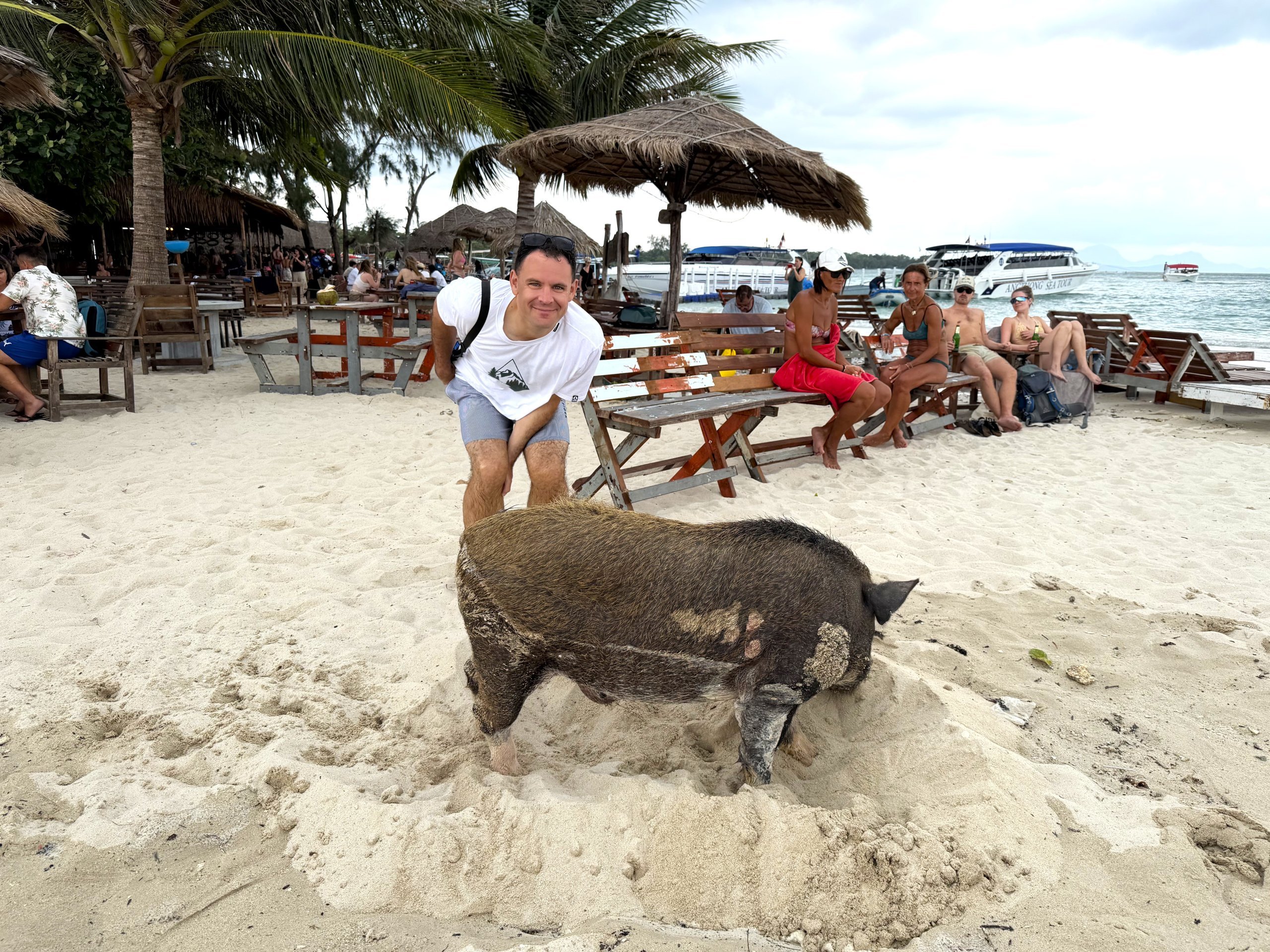 Koh Madsum, vagyis a Disznósziget tele van szabadon élő disznókkal.