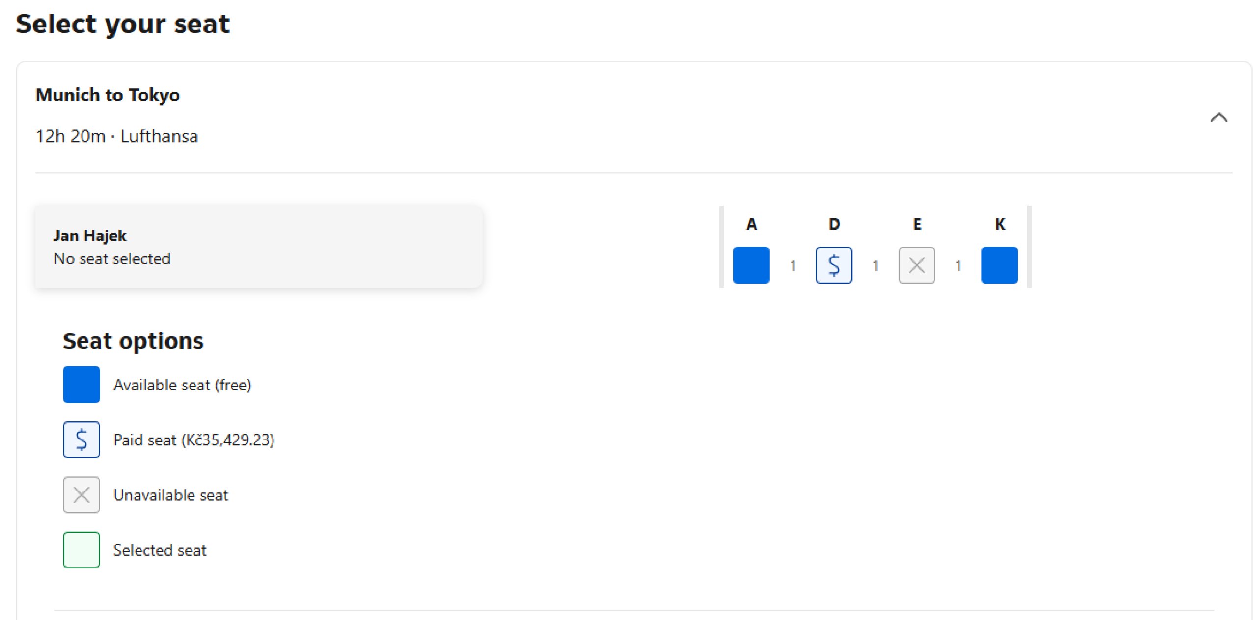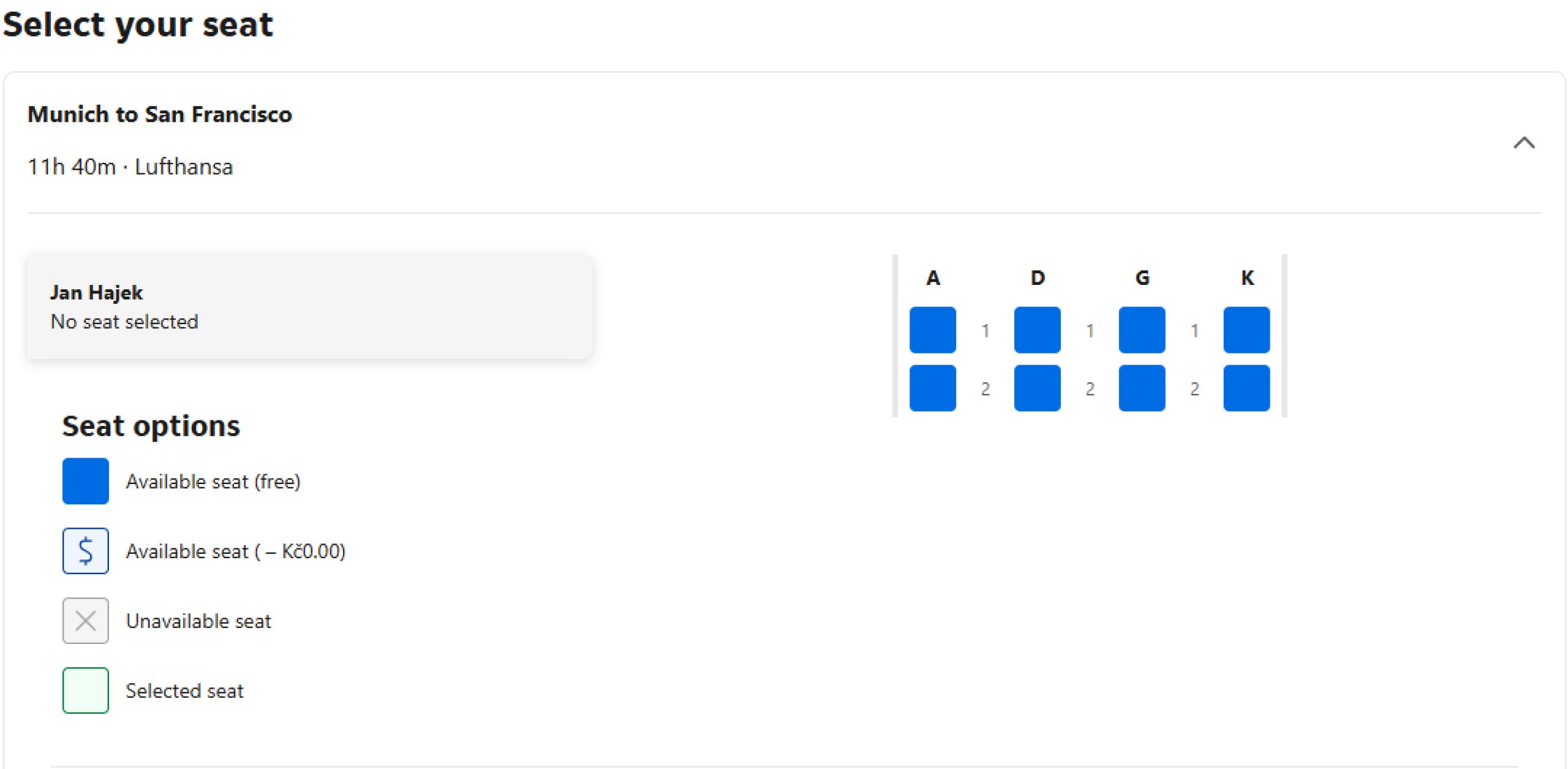 Íme néhány példa arra, hogyan néz ki a seatmap a booking.com-on történő foglaláskor.