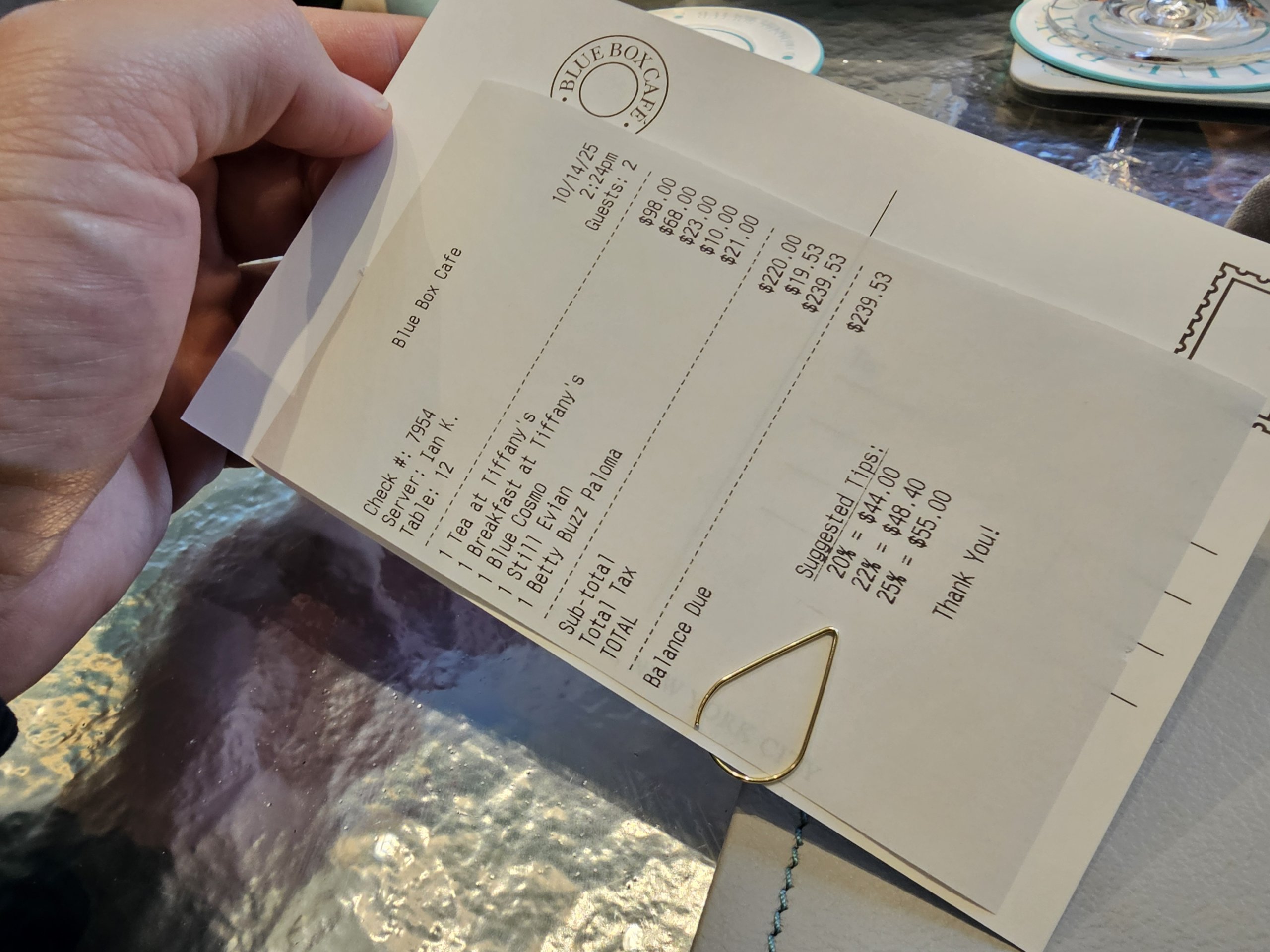 Mi a Breakfast at Tiffany's és a Tea at Tiffany's-t és két koktélt rendeltünk hozzá.
