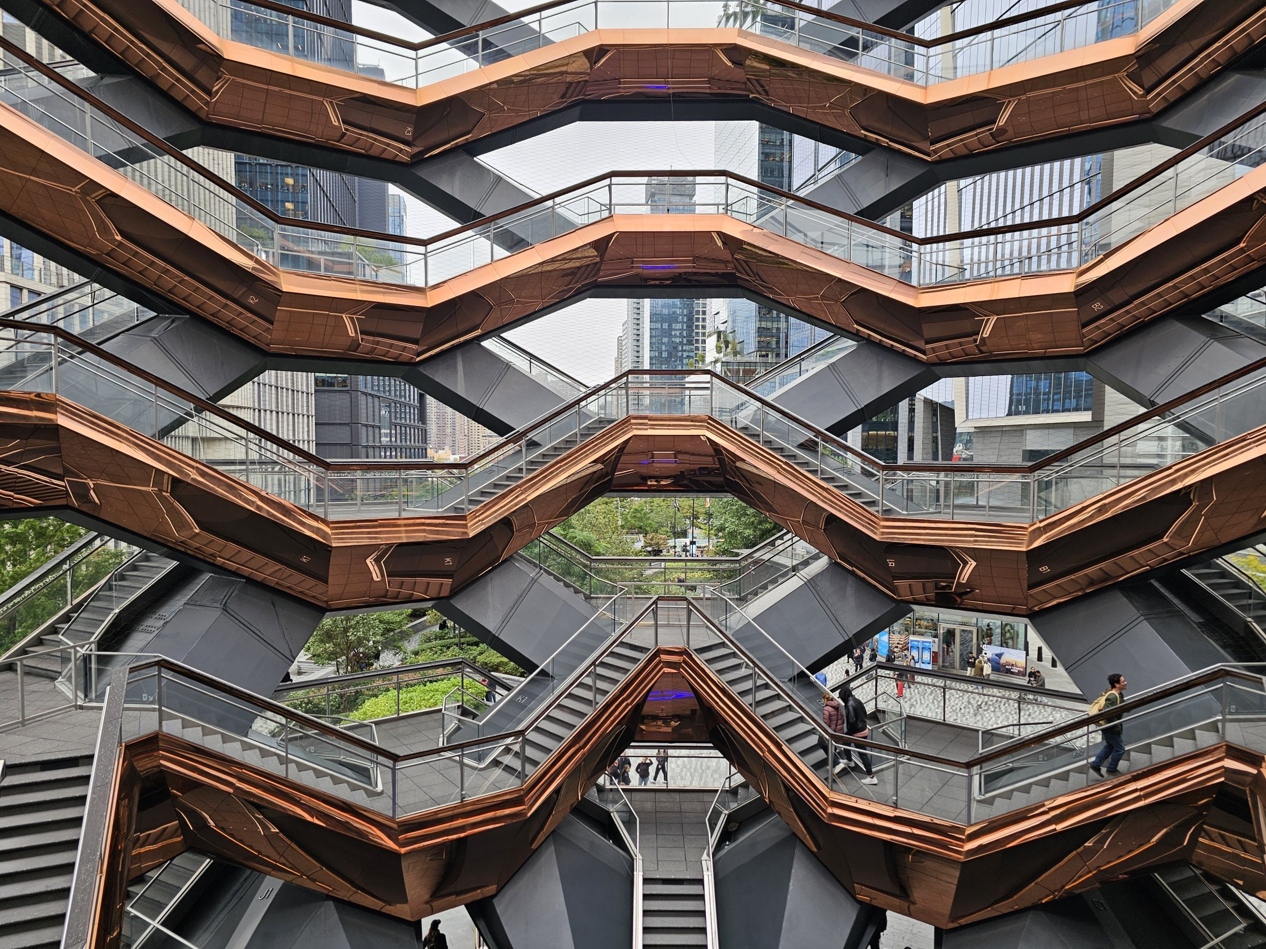 A Vessel belsejében található kör alakú és bronzból készült homlokzat remek és eredeti fotókat készít.