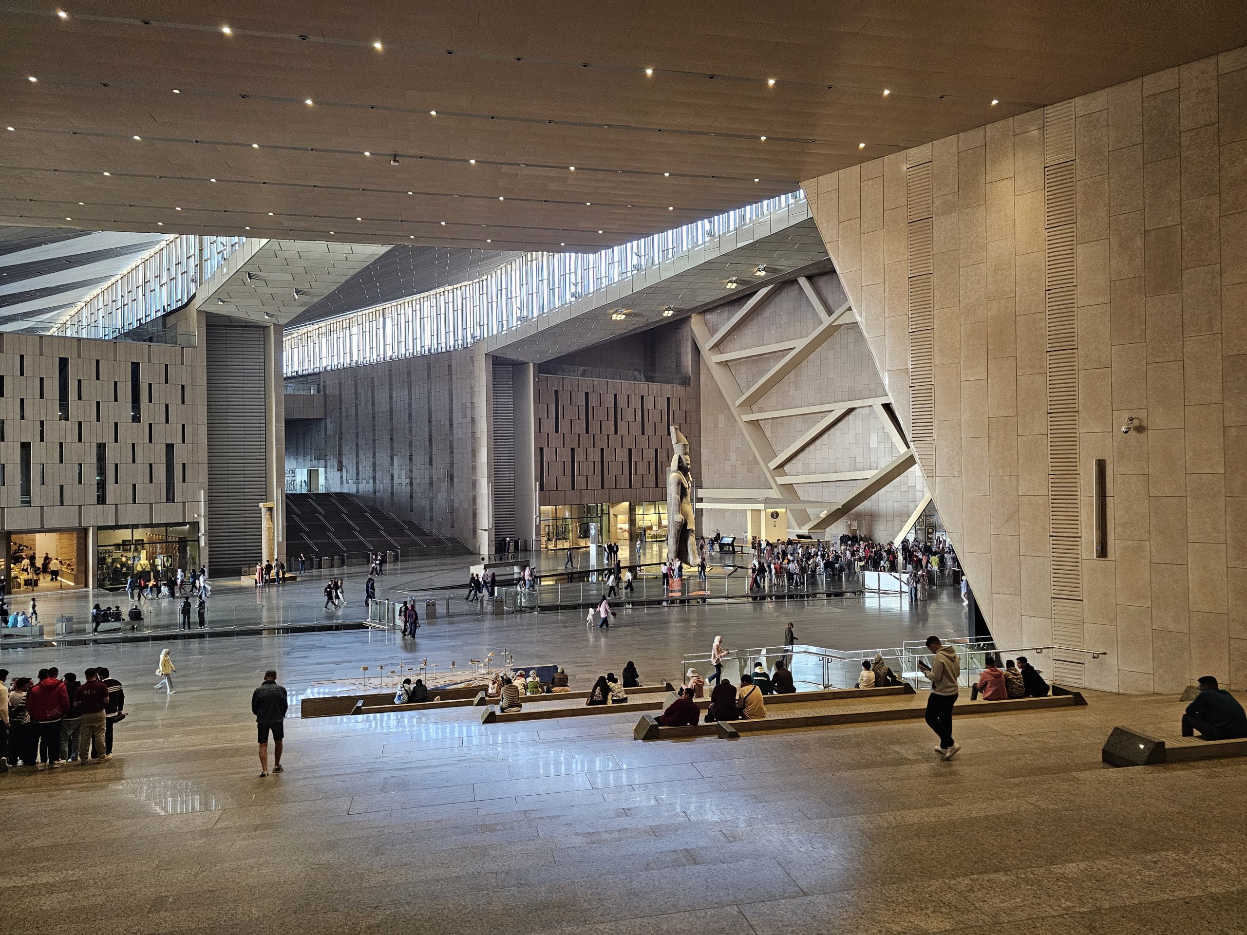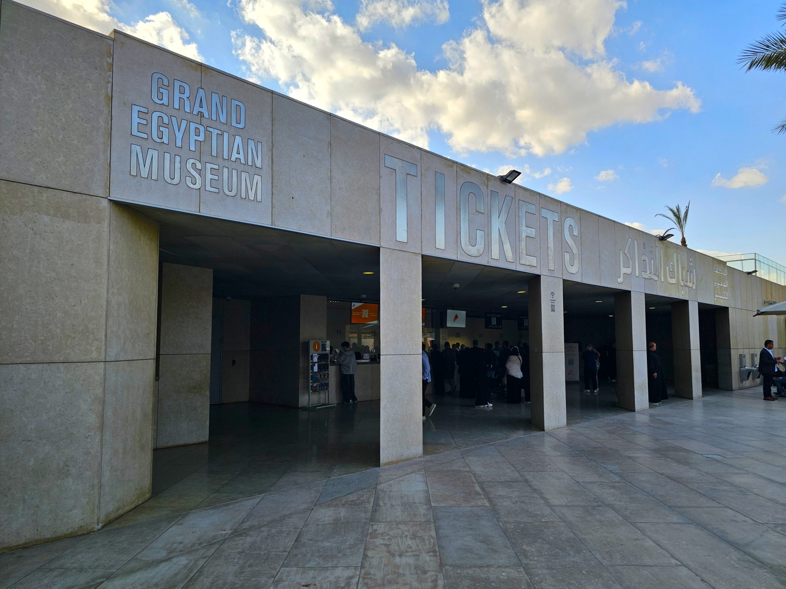 A GEM-be a főbejáraton keresztül léphet be, amely előtt II. Ramszesz fáraó obeliszkje áll.