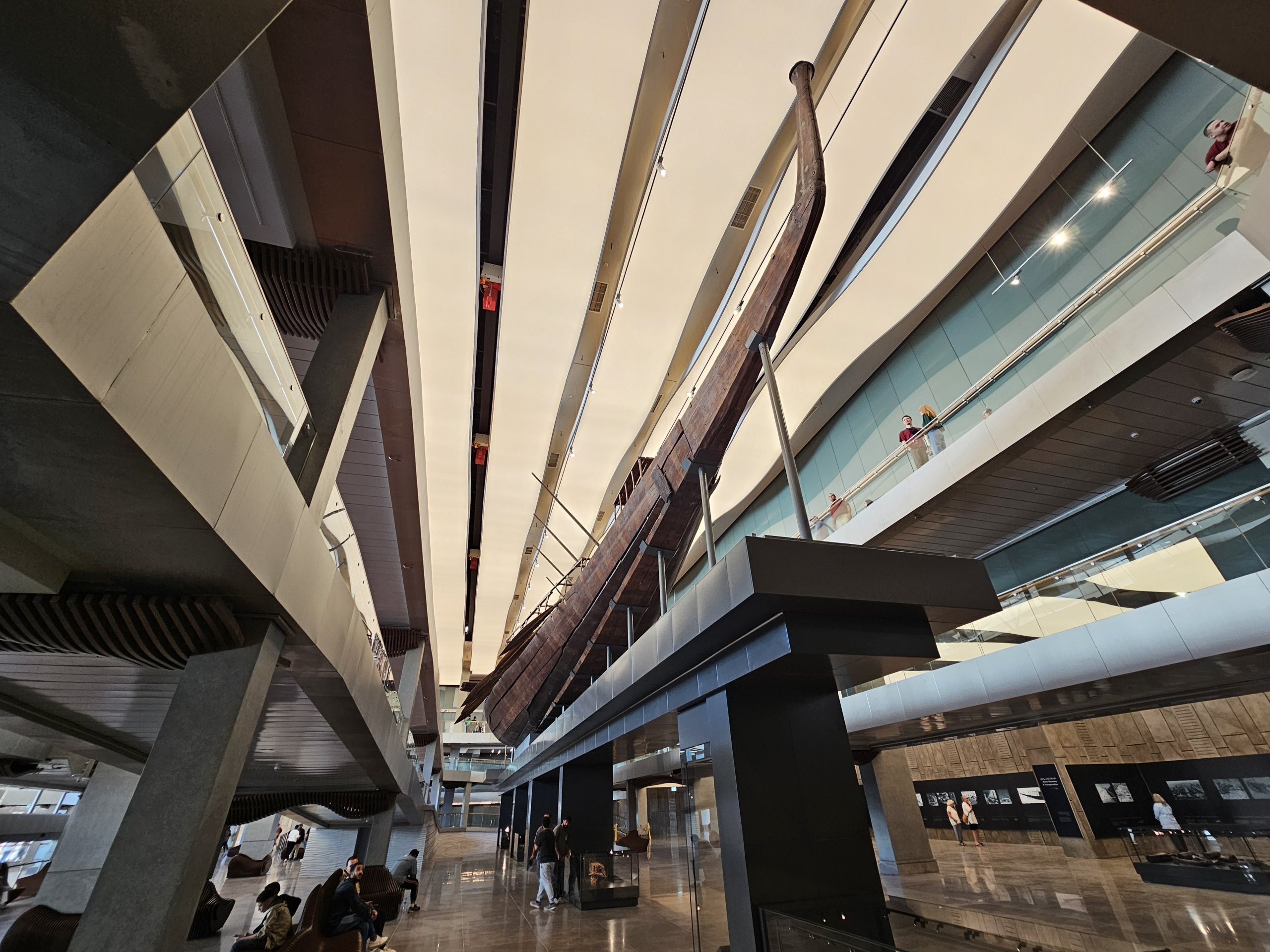 A nagy csarnokból érdemes egyenesen a szemben lévő kisebb épületbe menni, ahol Khufu király fahajóinak két pontos másolata látható.
