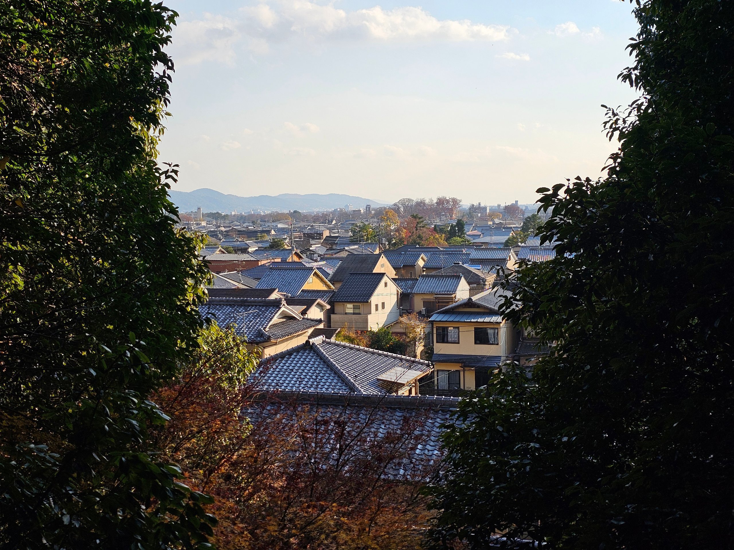 A kis dombról szép kilátás nyílik Kiotó északi külvárosaira.