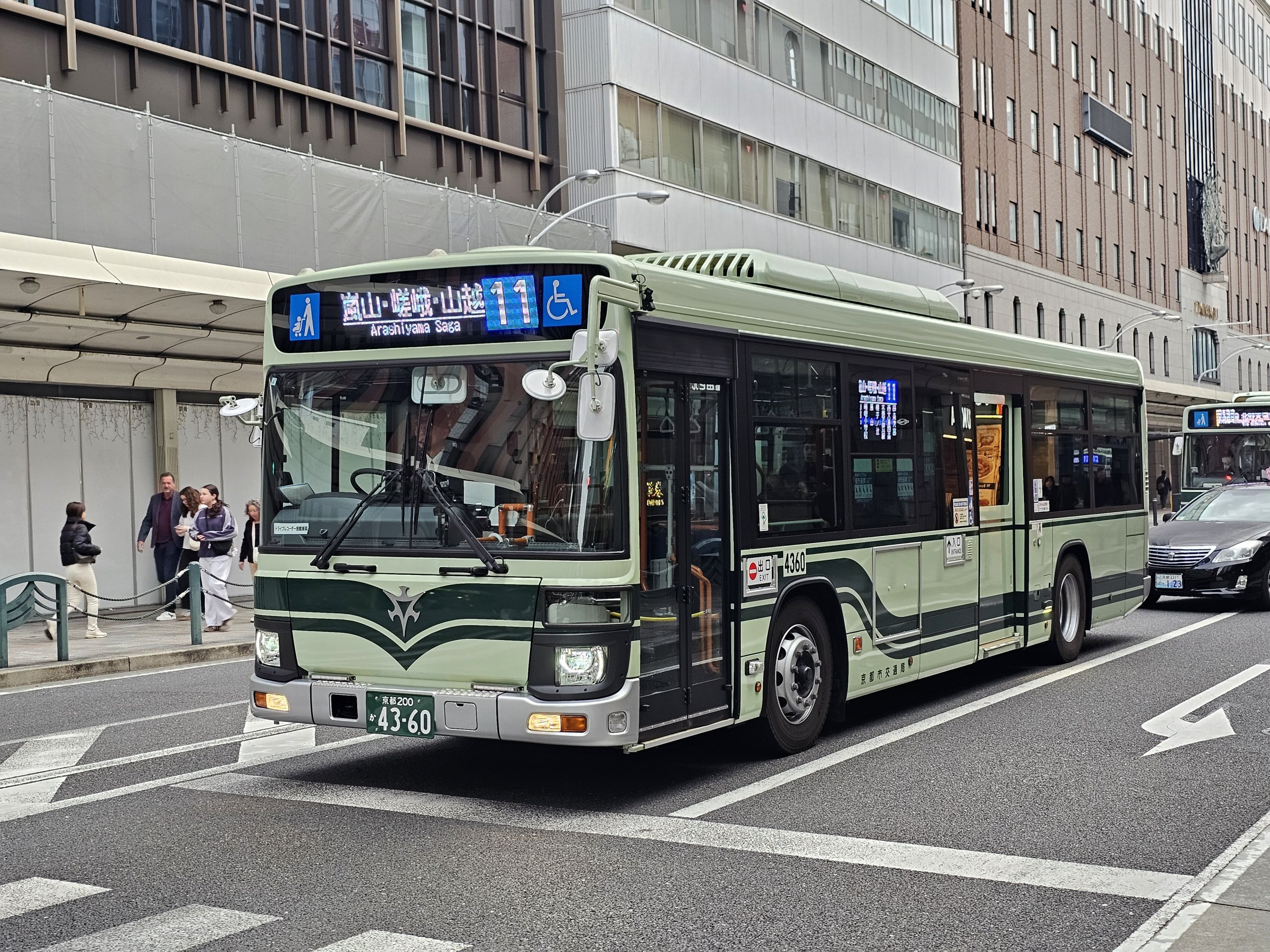 A JR-WEST vasúttársaság buszos ága két útvonalat üzemeltet Kiotóban. Mindkettőnek 230 jpy az átalánydíja.