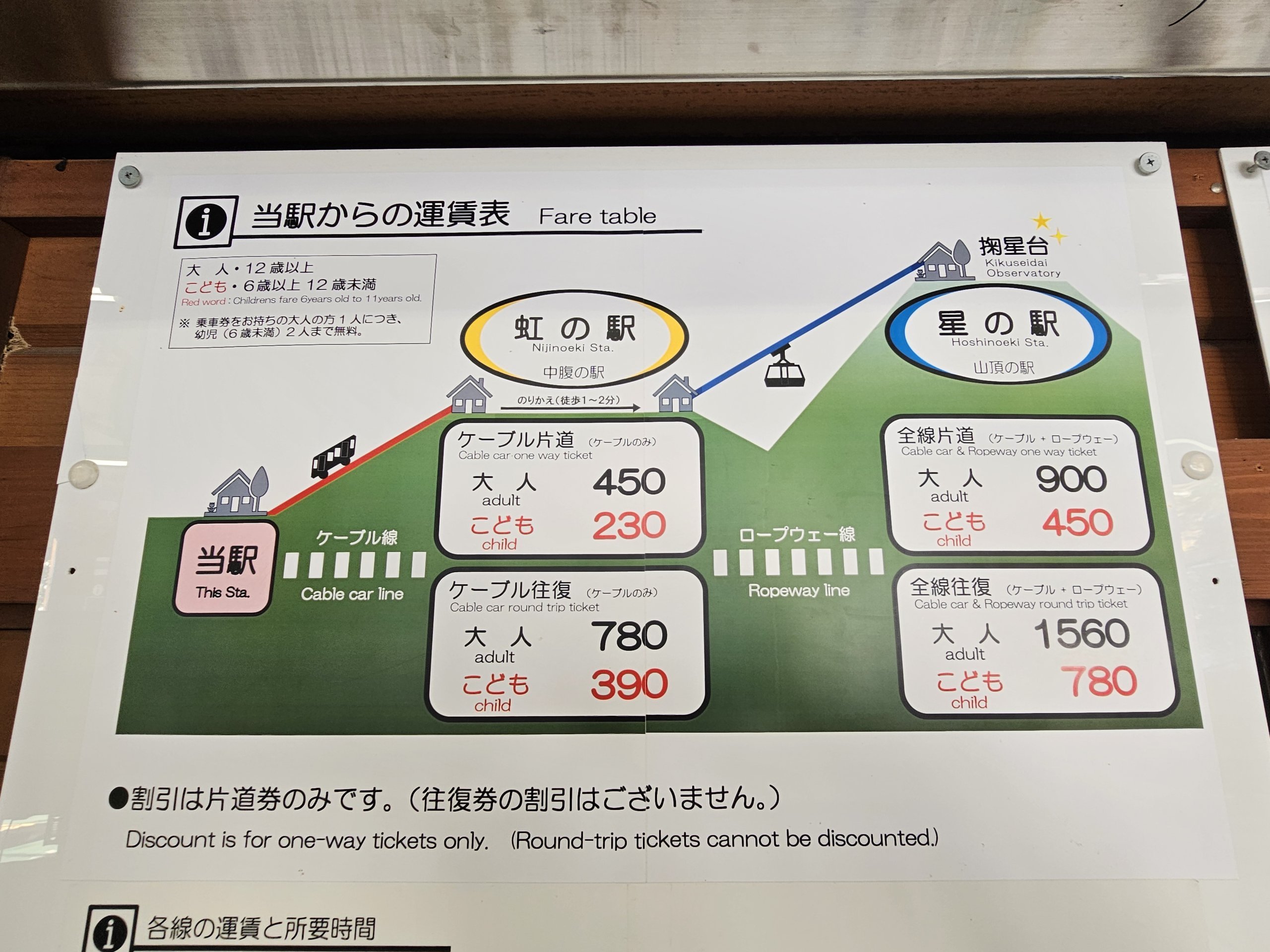 - 780 jpy - oda-vissza út csak a hegy felénél (kötélpálya)