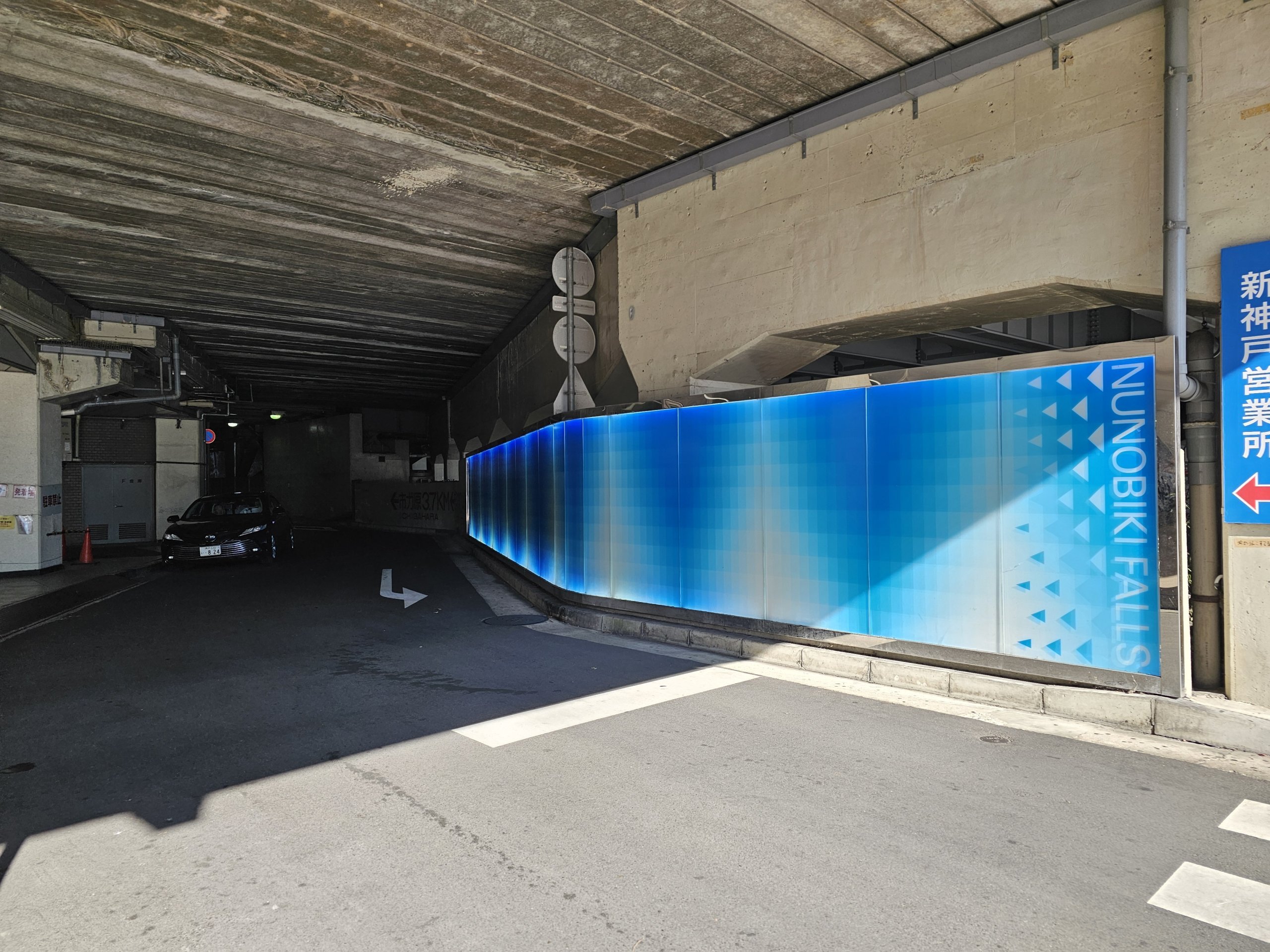 Először át kell haladni az állomás alatti aluljárón, amely kék színnel van jelölve, és amelyen a "Nunabiki vízesés" felirat szerepel.