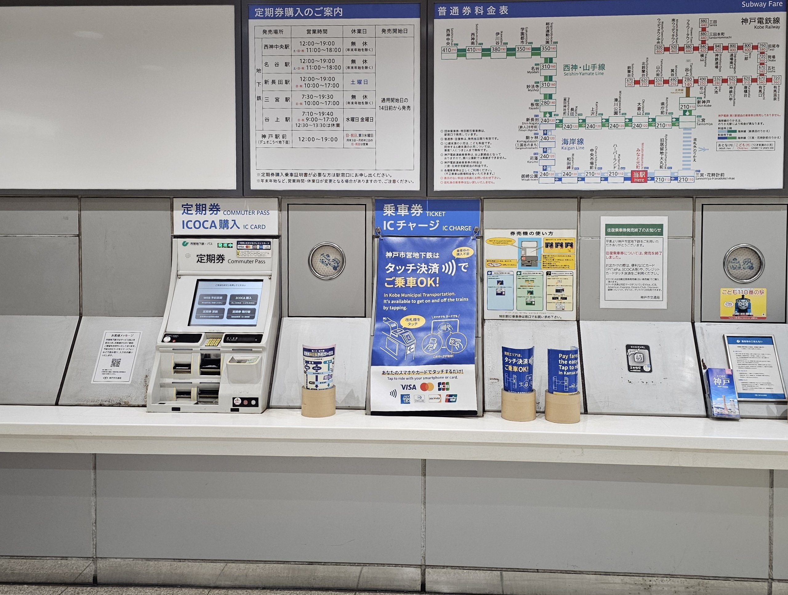 Az ICOCA kártyát Kobe-ban vagy Oszakában árulják, de itt bármelyik országos japán kártyát használhatod, például a tokiói Suicát.