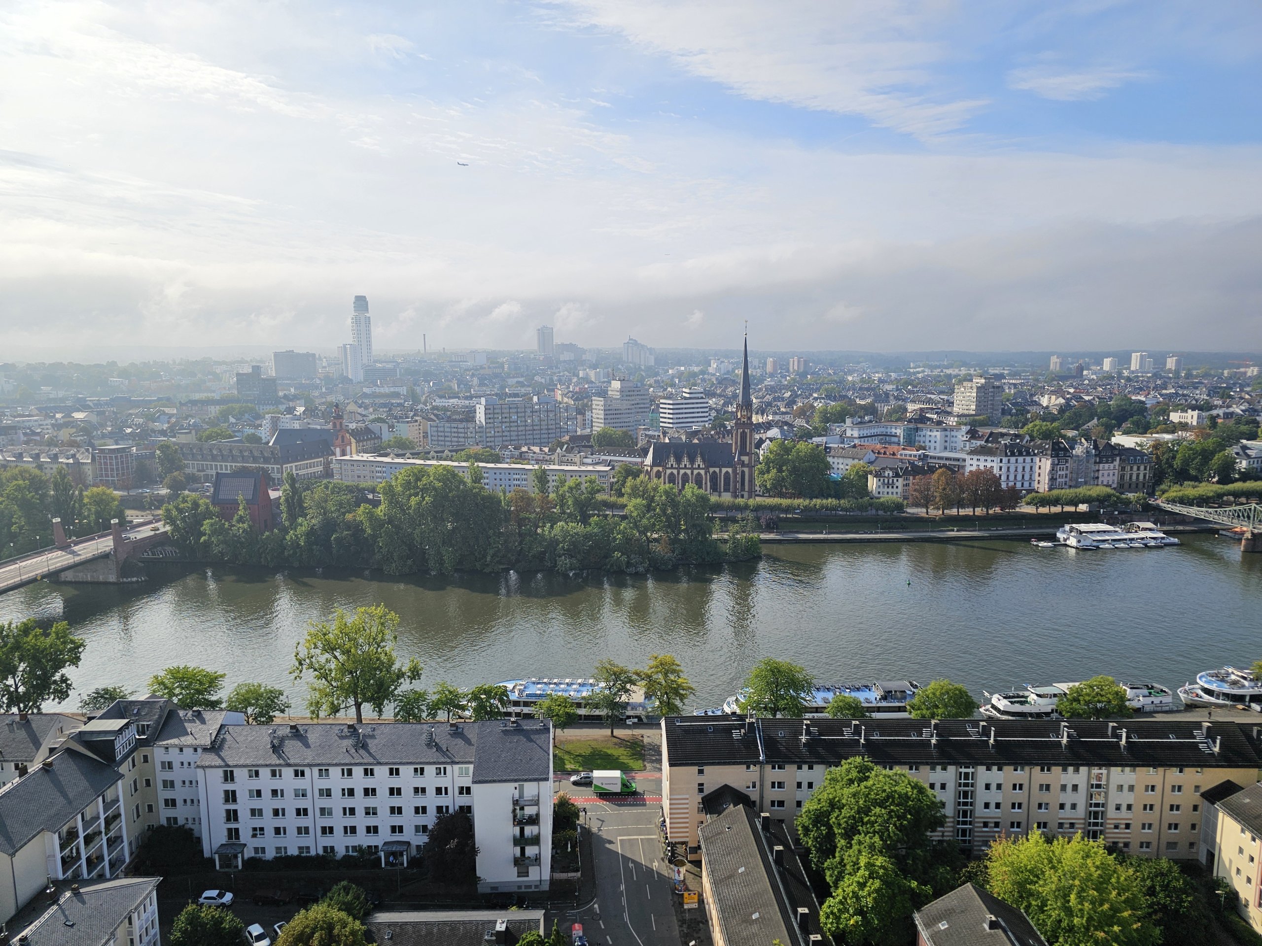 Innen élvezheti a valaha volt legjobb kilátást a modern frankfurti sziluettre, a Majna folyóra és a város déli részére.