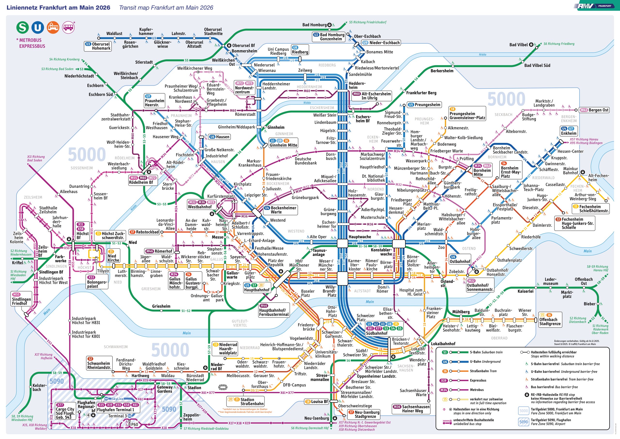 Az állomások, vonalak és menetrendek részletes listája az rmv.de weboldalon található.