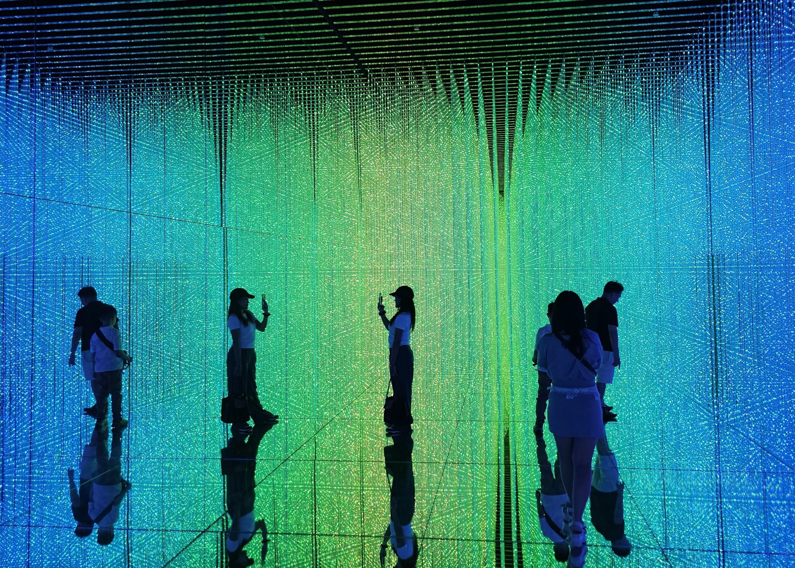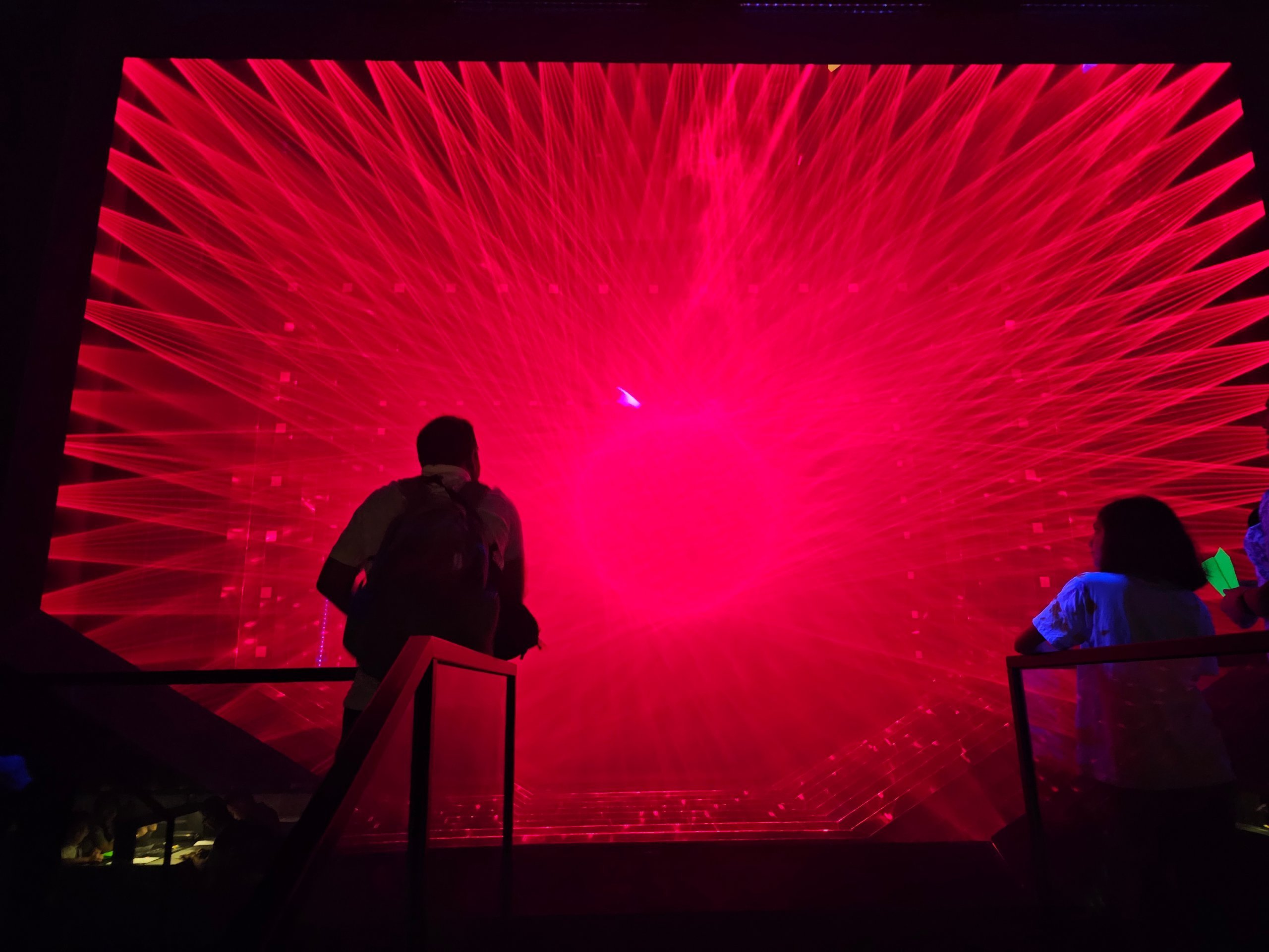 A TeamLab egy nagyon játékos installáció, amely főként a világításra és a mesterséges intelligencia effektekre koncentrál.