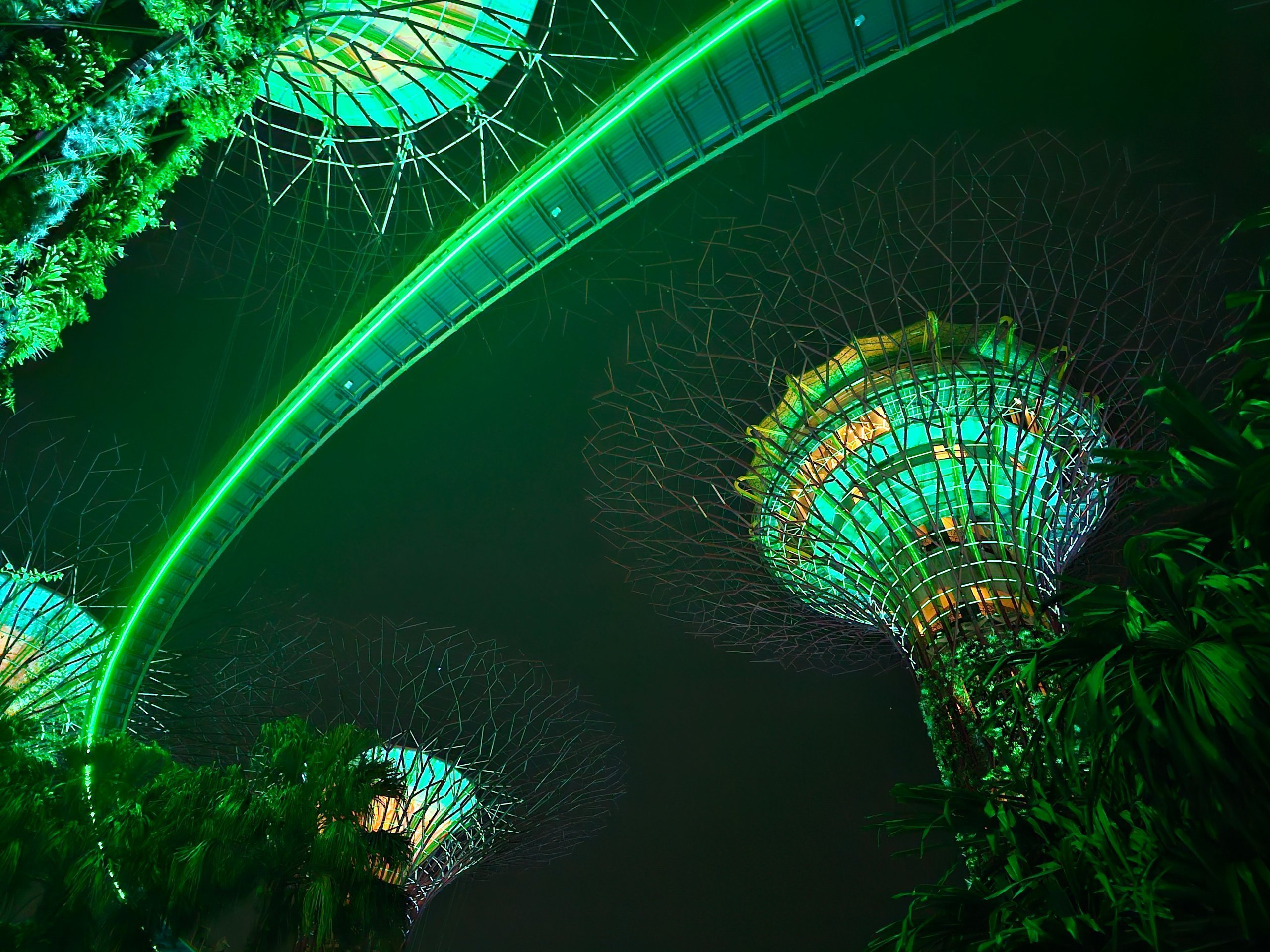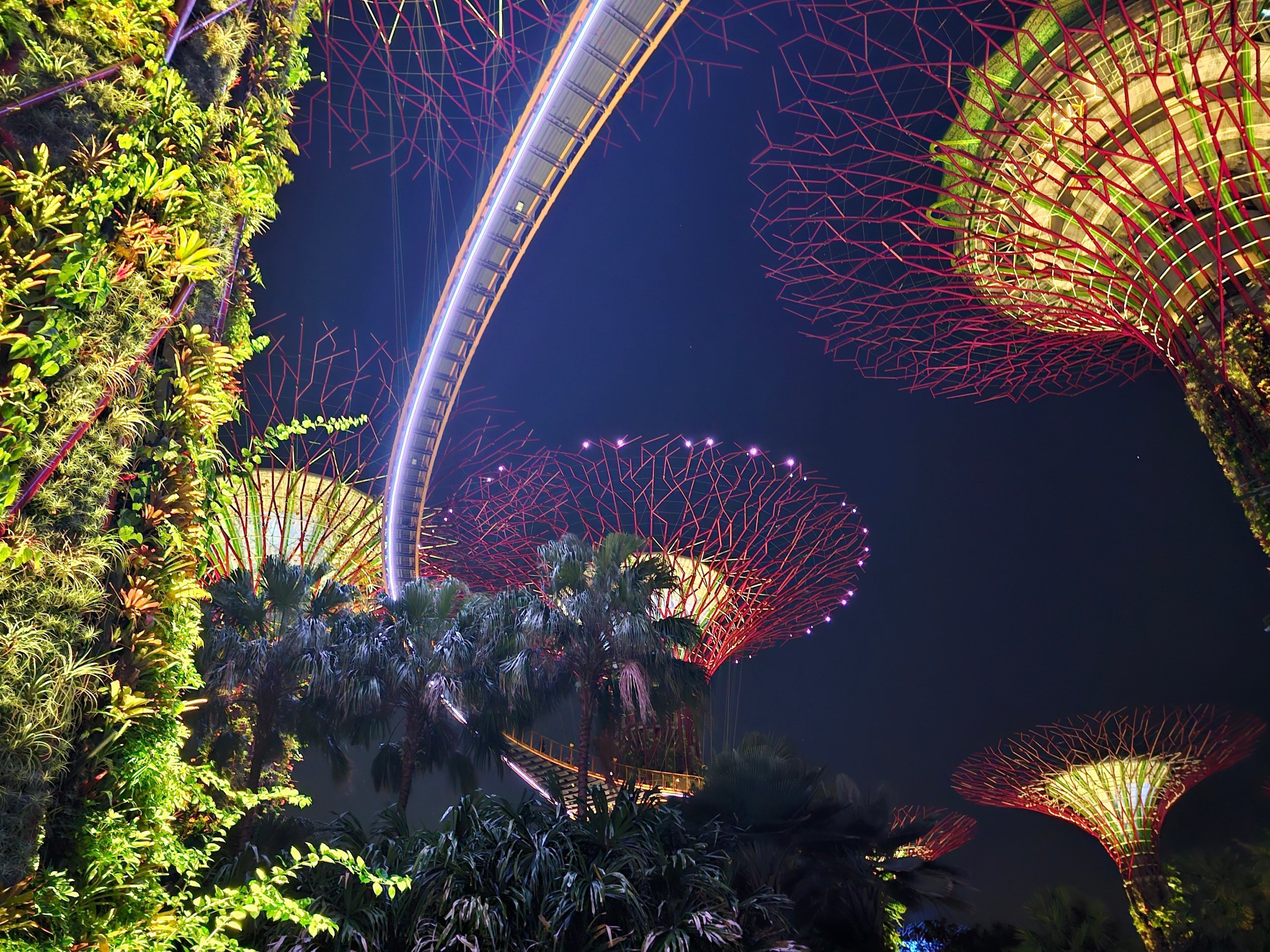 Leghíresebb részei az úgynevezett szuperfák - 25-50 méter magas óriási acélszerkezetek, amelyek: