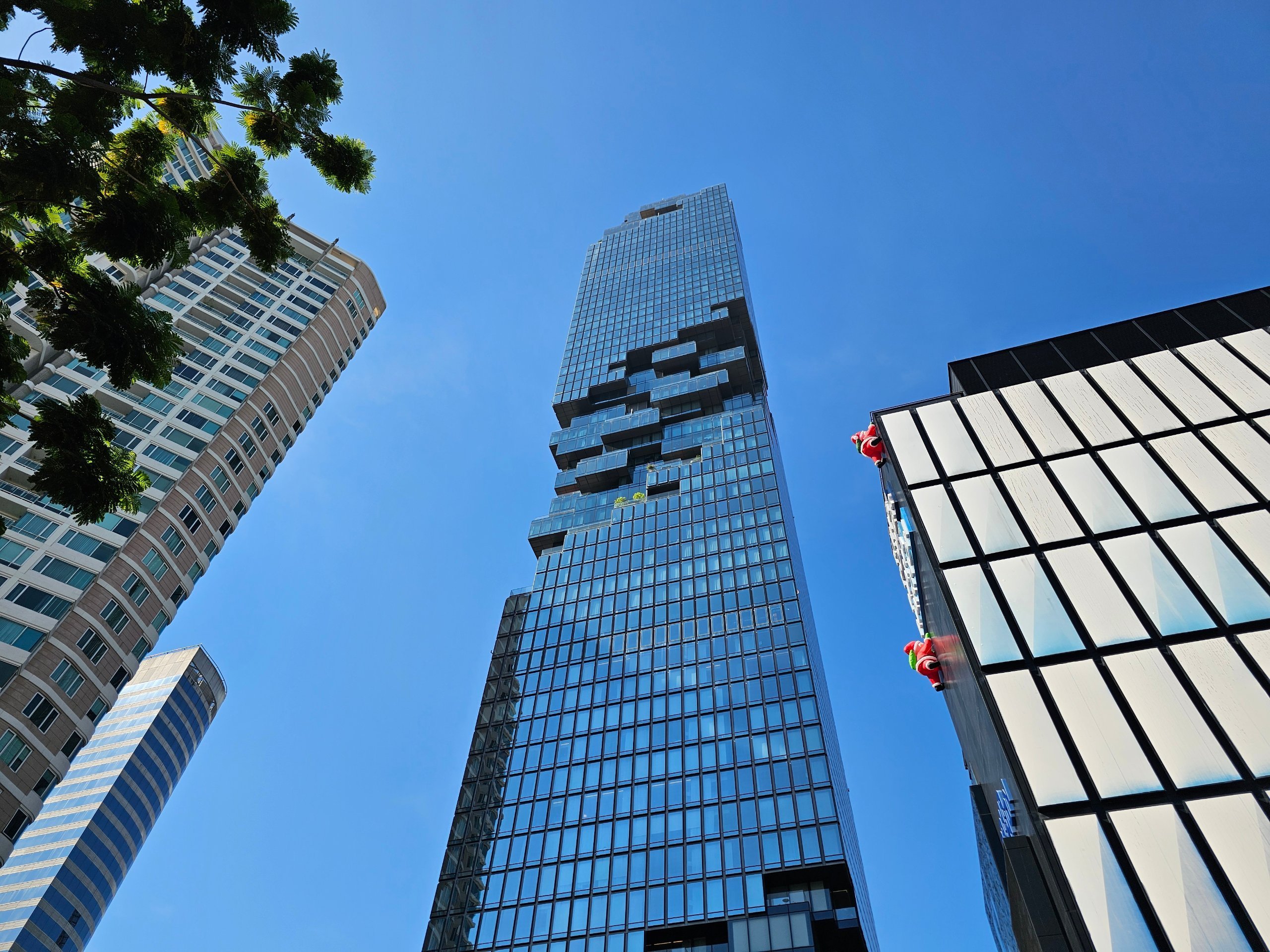 314 méterrel Bangkok felett. Thaiföld legmagasabb kilátópontja. Üvegpadló, nyitott terasz és a város kevés olyan élményének egyike, amely percek alatt valódi kontextust ad arról, hogy Bangkok milyen hatalmas.