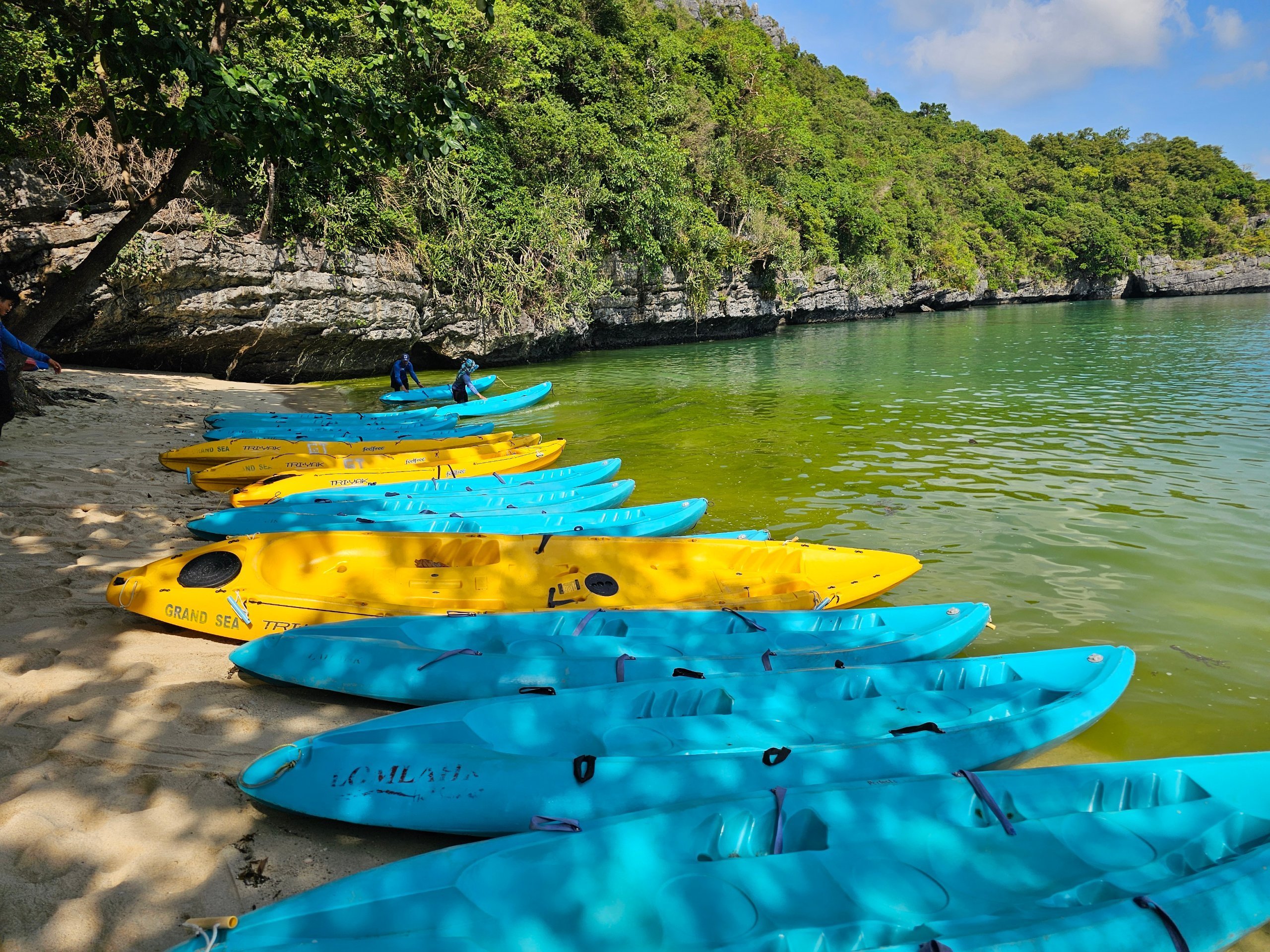 Először is el kell mondani, hogy a Mu Ko Ang Thong Nemzeti Parkba nem lehet egyedül menni. Nincsenek nyilvános kompok, és mindig fizetni kell egy szervezett túráért.