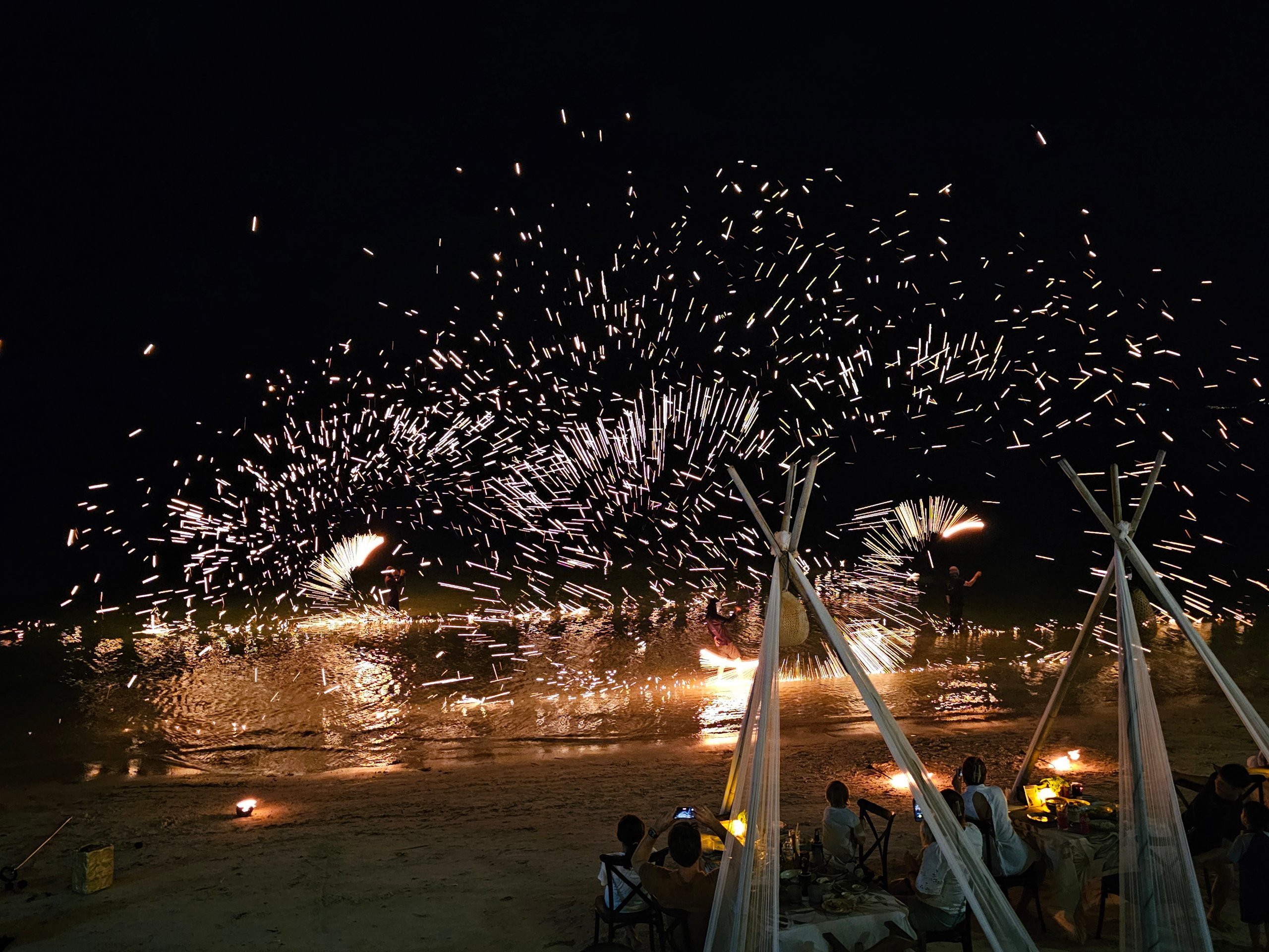 Ezeket a tűzshow-kat bármikor és foglalás nélkül szabadon meg lehet nézni - minden nap több is van a strandon.