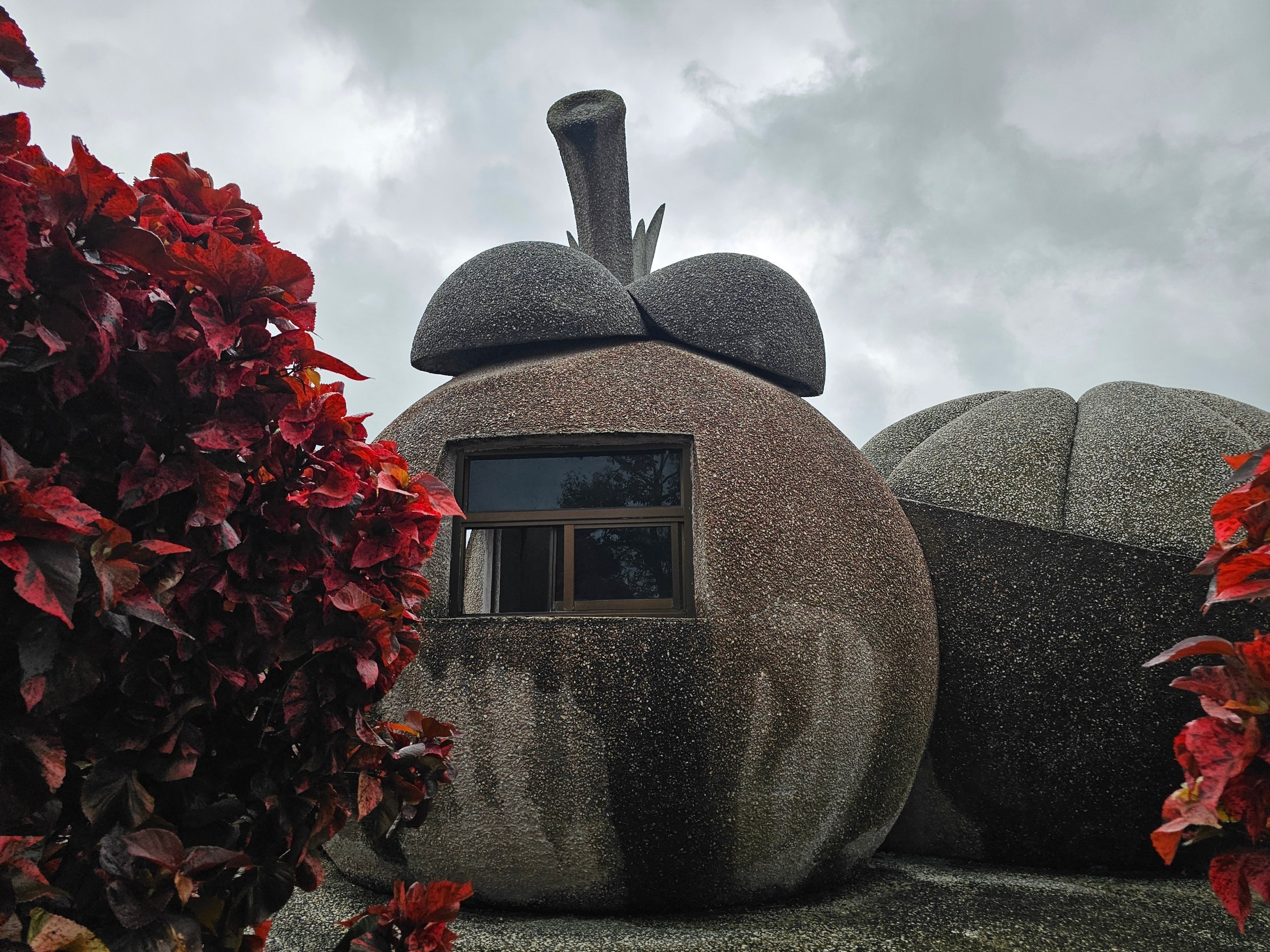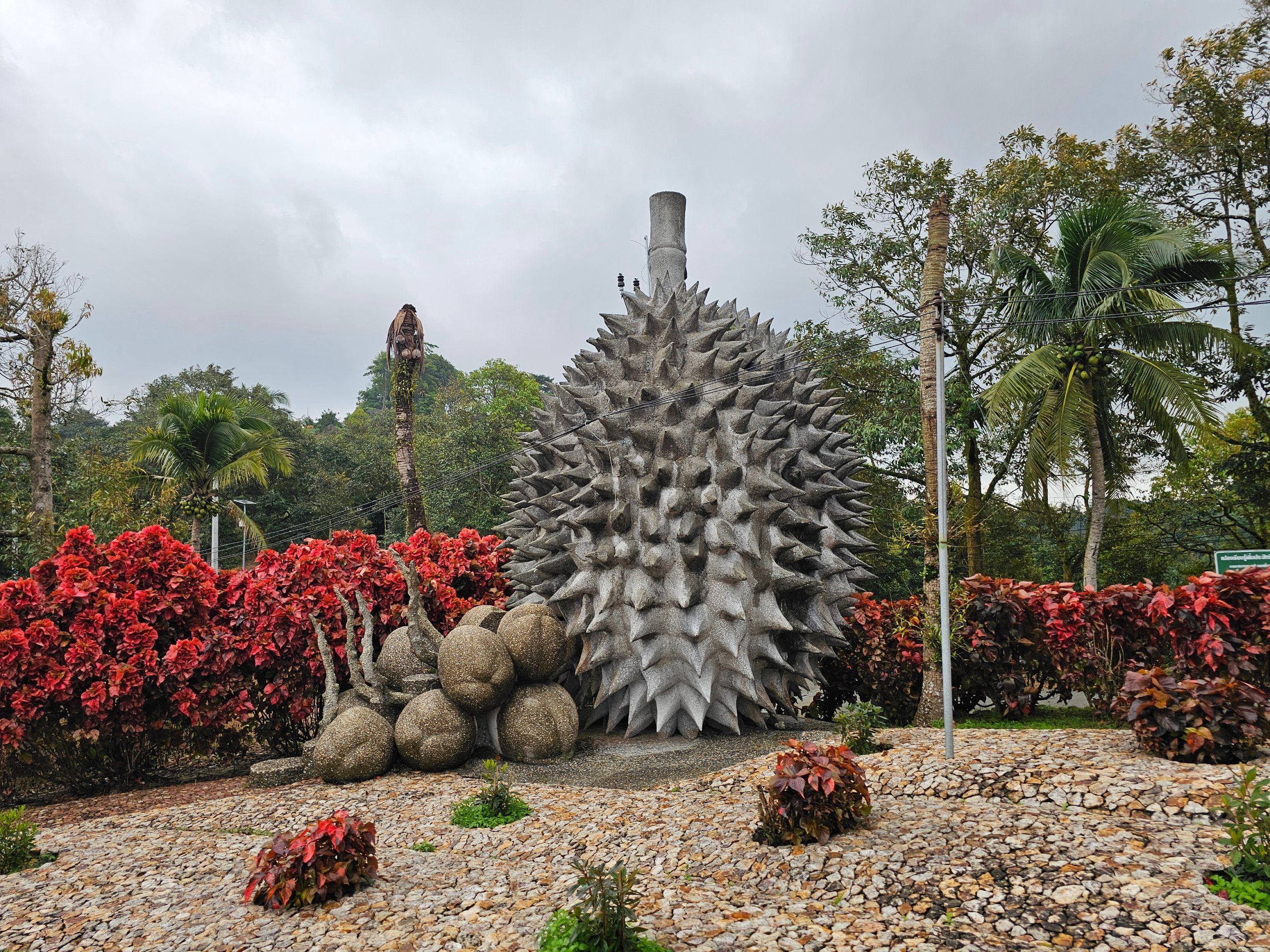 Az út mentén csonthéjas "gyümölcsök" (durian, alma, ananász és más gyümölcsök) gyűjteményét találod, amelyek egy kicsit olyanok, mint egy bizarr kert, amelynek nincs egyértelmű összefüggése.