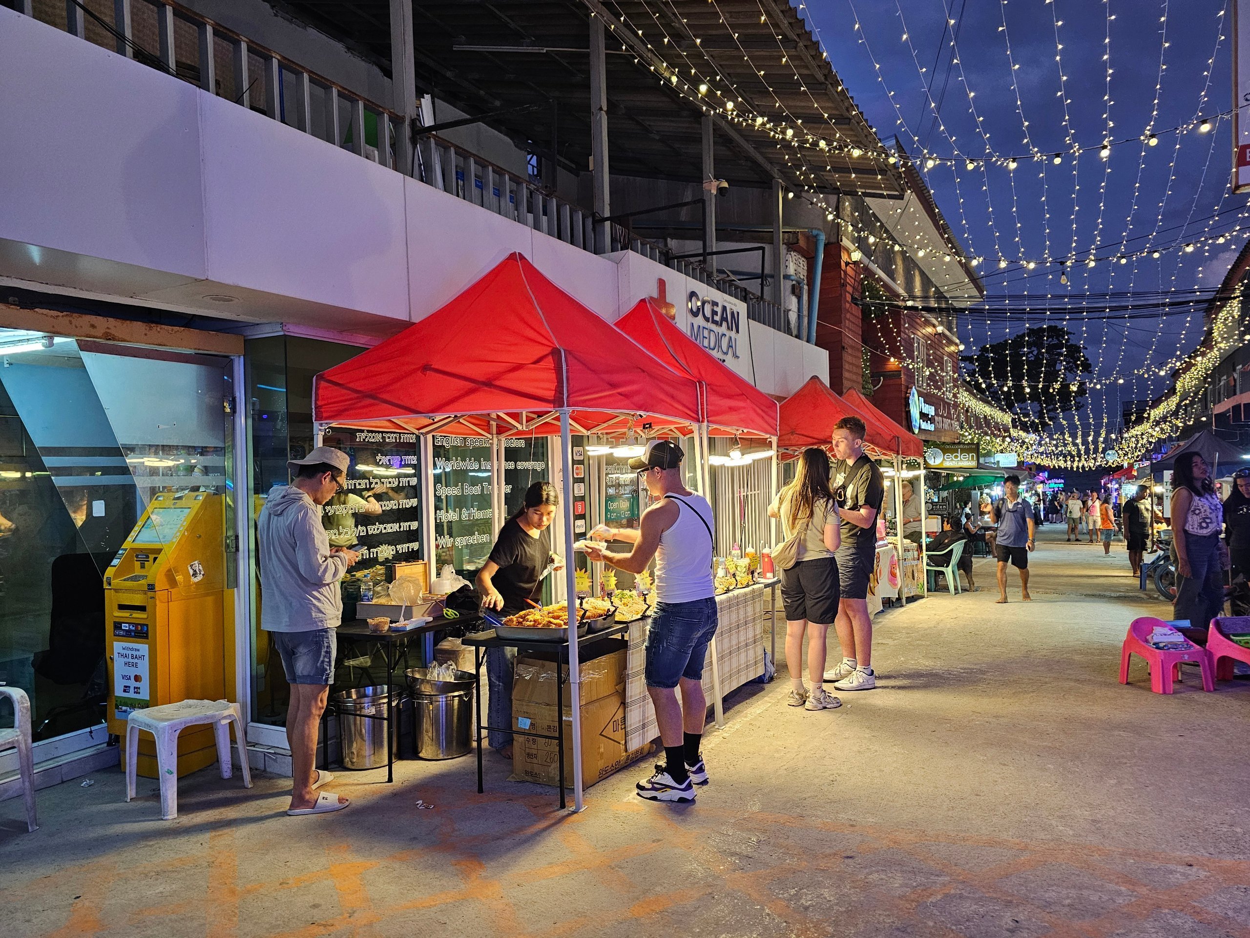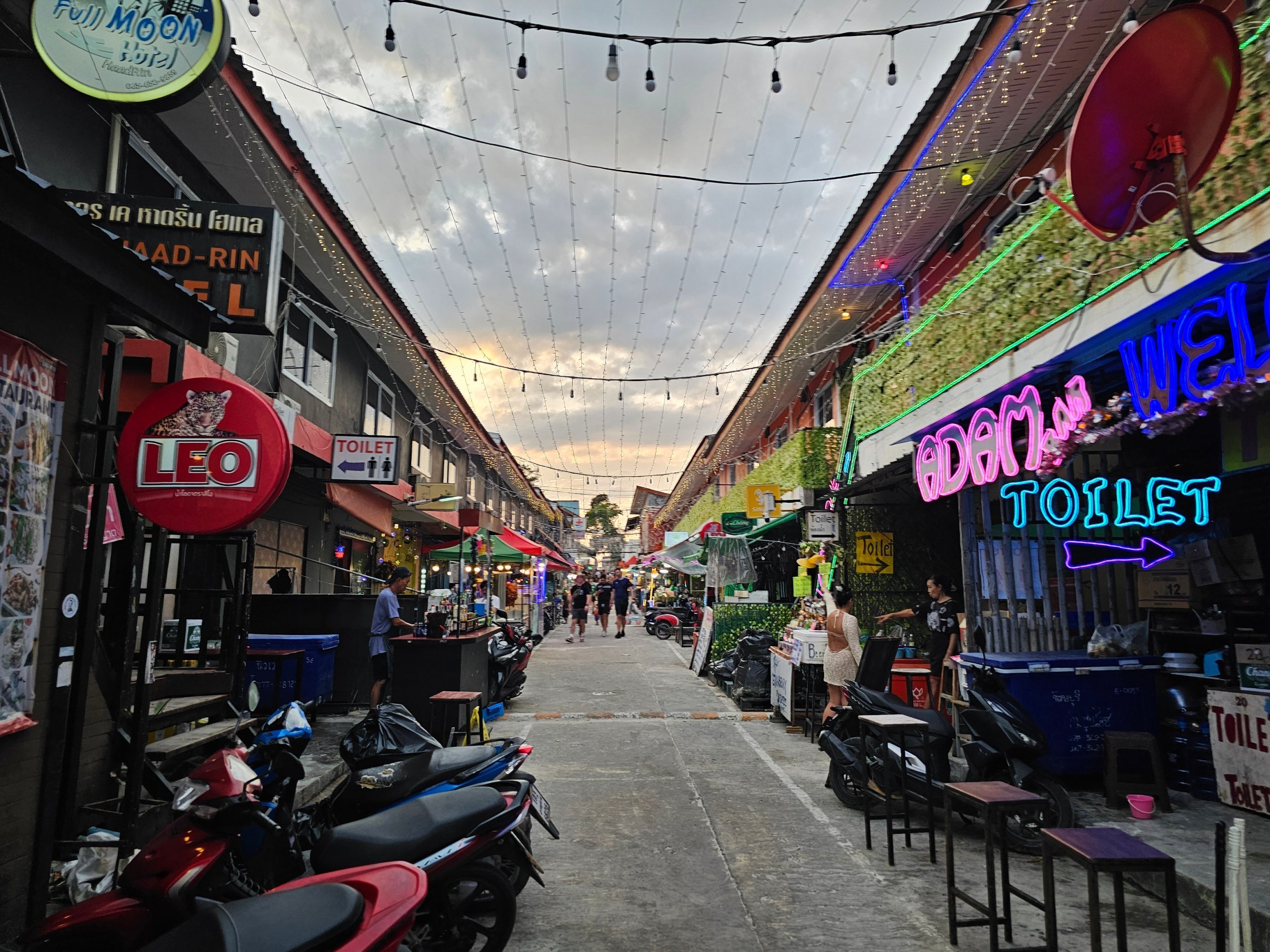 A Haad Rin Sétálóutca a Telihold Party idején a legélénkebb, de azon kívül is nyitva van.