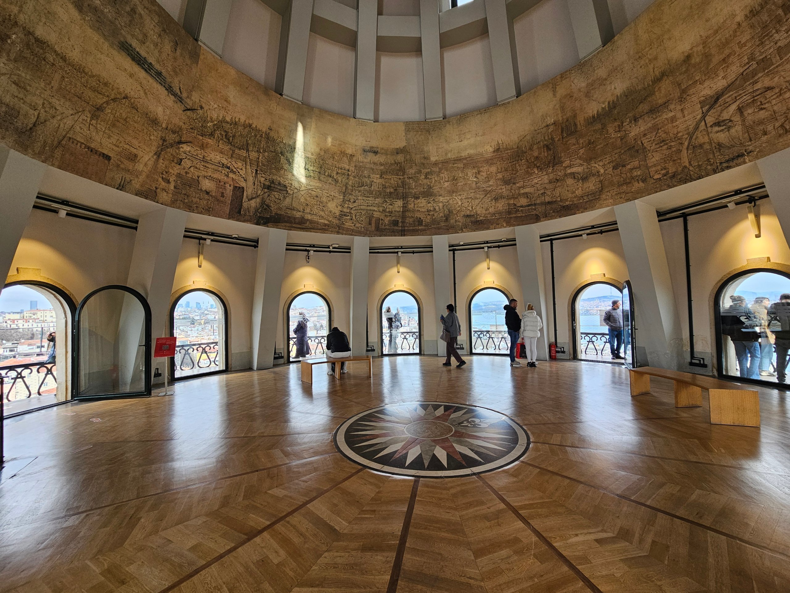 A Galata-torony kör alakú, üveg nélküli szabadtéri = 360°-os panoráma, amely kiváló feltételeket biztosít a fényképezéshez. A tér azonban szűk és gyakran zsúfolt.