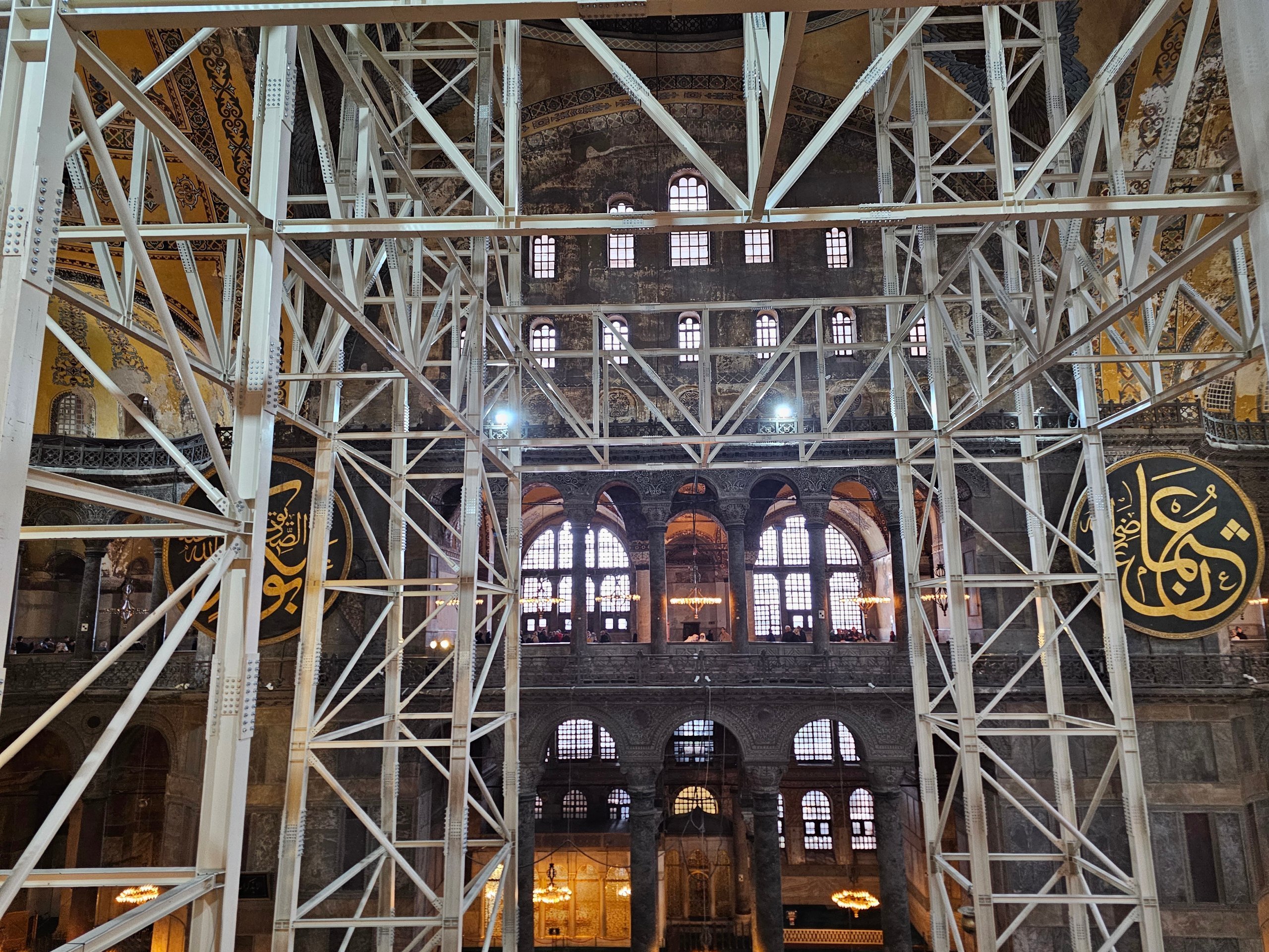 - hihetetlenül tágasnak tűnik, de a tér nagy részét a kupolát tartó hatalmas állványzat tölti ki.