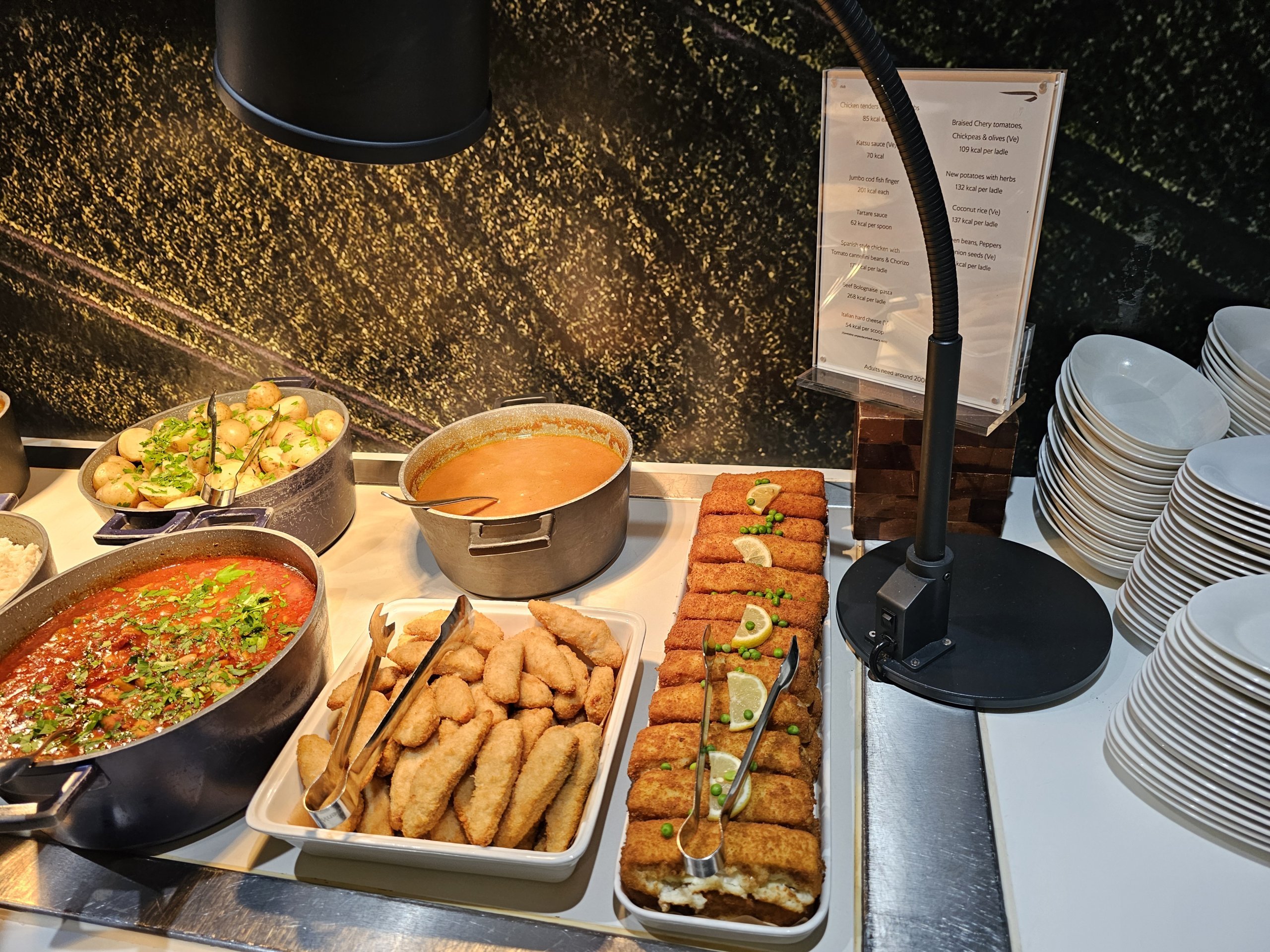 - Kis választék meleg ételekből, nincs gyümölcs és minimális sütemény.