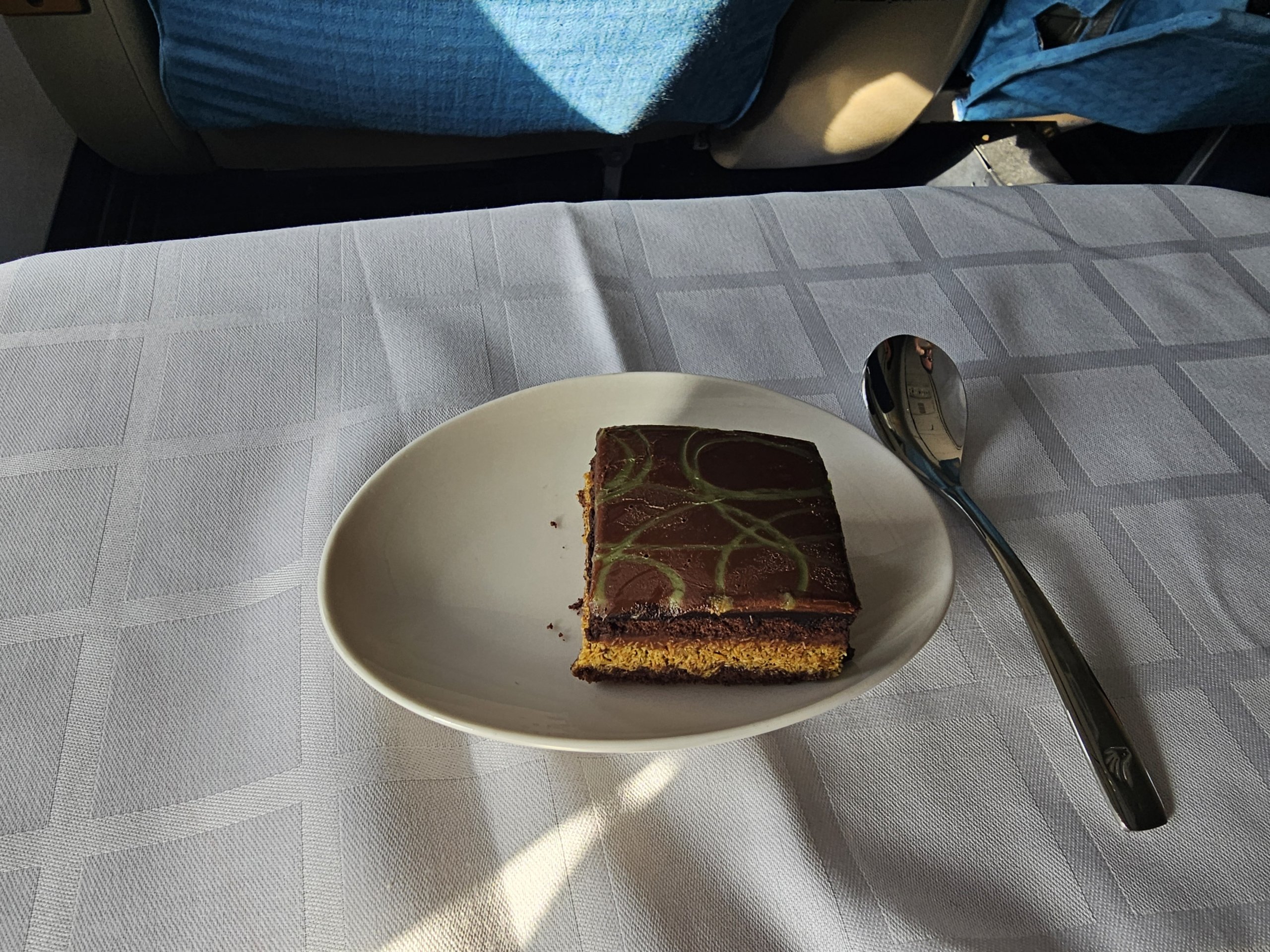A fedélzeti kiszolgálás inkább átlagos. Különösen az étkezésben voltam eléggé csalódott, másrészt a kényelmi csomag inkább átlagon felüli egy regionális járathoz képest a régió más légitársaságaihoz képest.