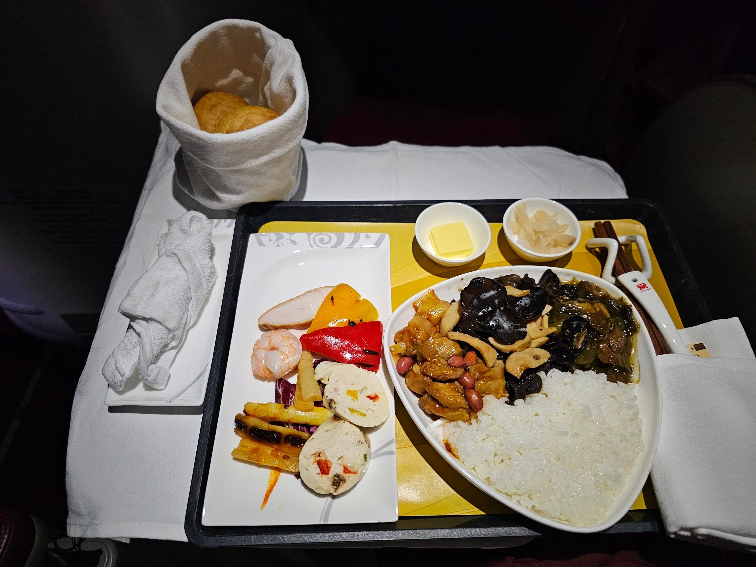 A felszállás után következik a főétkezés, ami ízében hasonló az előző szakaszon tapasztaltakhoz - inkább kínai stílusú, kevésbé markáns tálalásban.