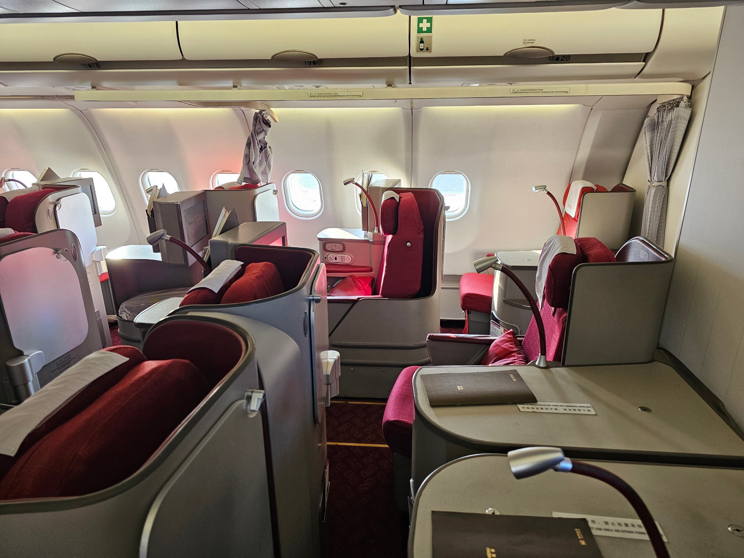 Ez a business osztályú konfiguráció rosszabb, mint az előző járat, de még mindig jelentősen jobb, mint az Airbus A330-200-as vagy a Boeing 737-es.
