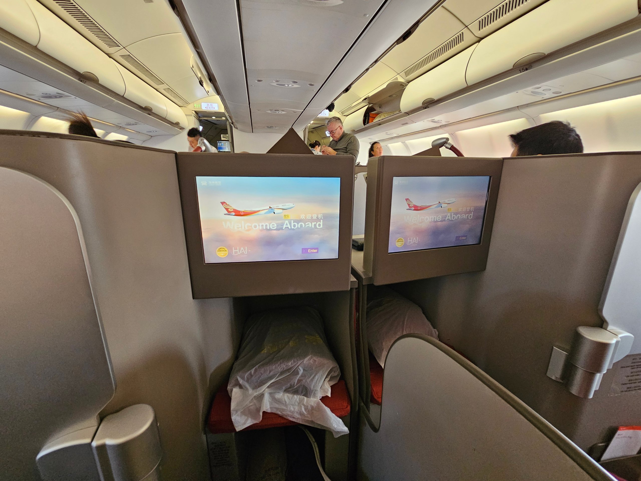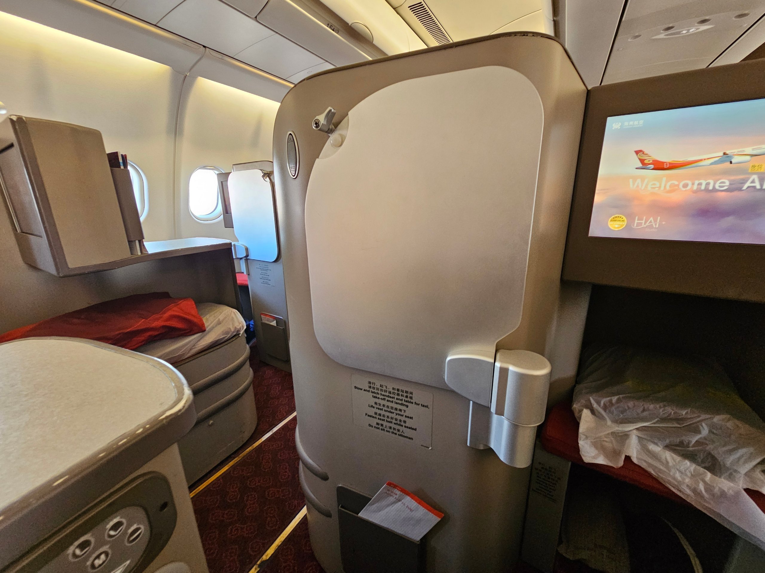 A Hainan Airlines business osztályát a PEK-BKK útvonalon szintén egy Airbus A330-300-as üzemelteti, de ezúttal egy másik Stelia Solstys konfigurációban. És ez a különbség a kabinban a döntő.