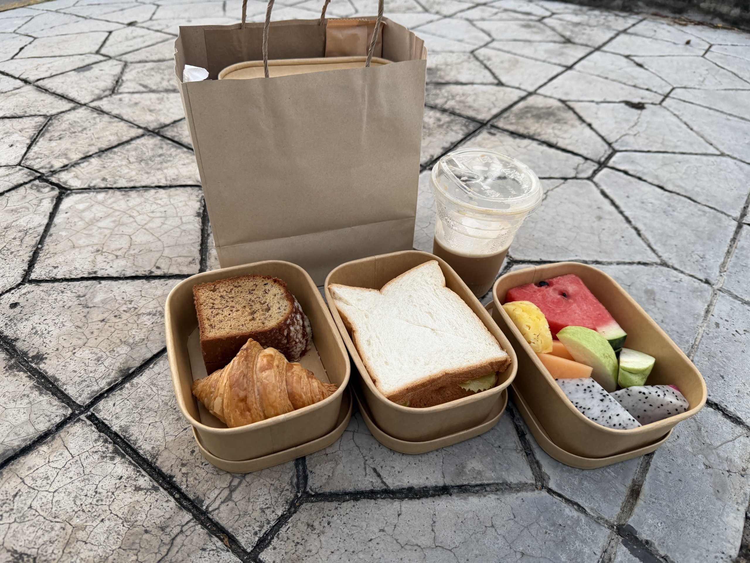 A recepción felajánlották nekünk, hogy saját maguknak elviteles reggeli csomagot adnak. A csomag tartalmazott kávét, két szelet pirítóst és gyümölcsöt. Elég alap, de bőségesen elegendő egy kora reggelihez, és nagyon kedves gesztus.