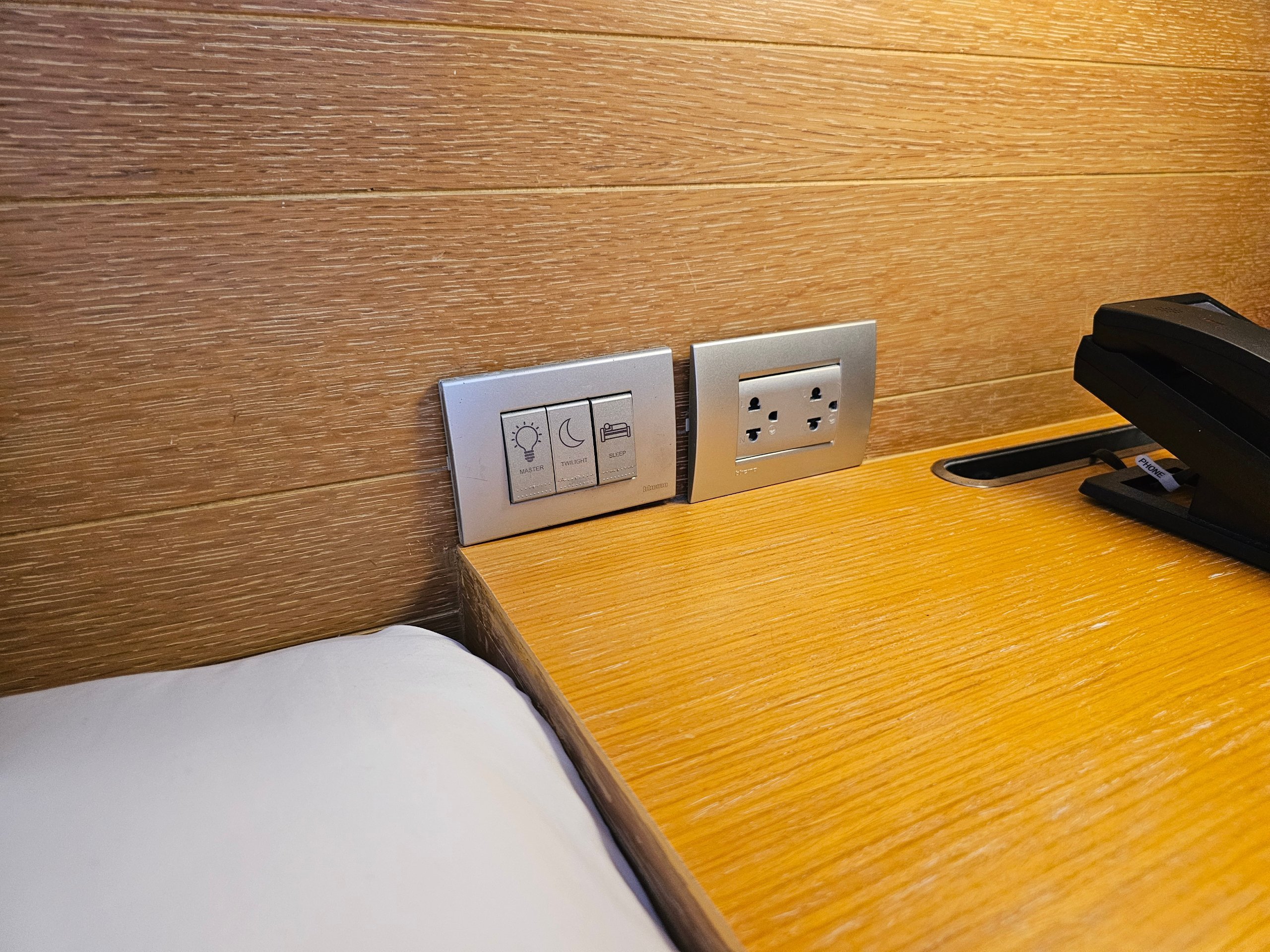 Csalódott voltam viszont, hogy közvetlenül az ágy mellett nincs klíma és USB-csatlakozó, csak klasszikus univerzális konnektorok.
