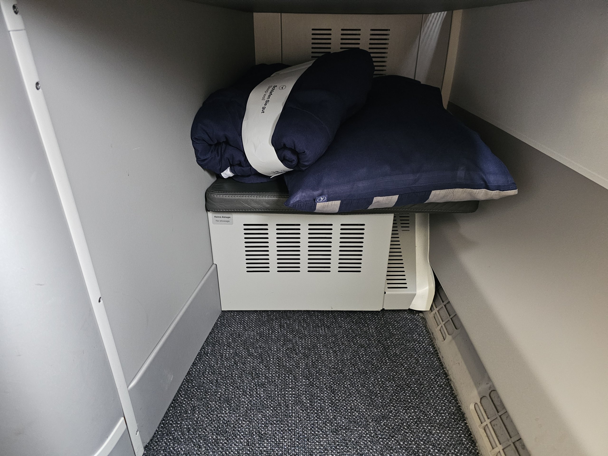 Hiányzik belőle az ágynemű, de ez általában csak az éjszakai járatokon szokás.