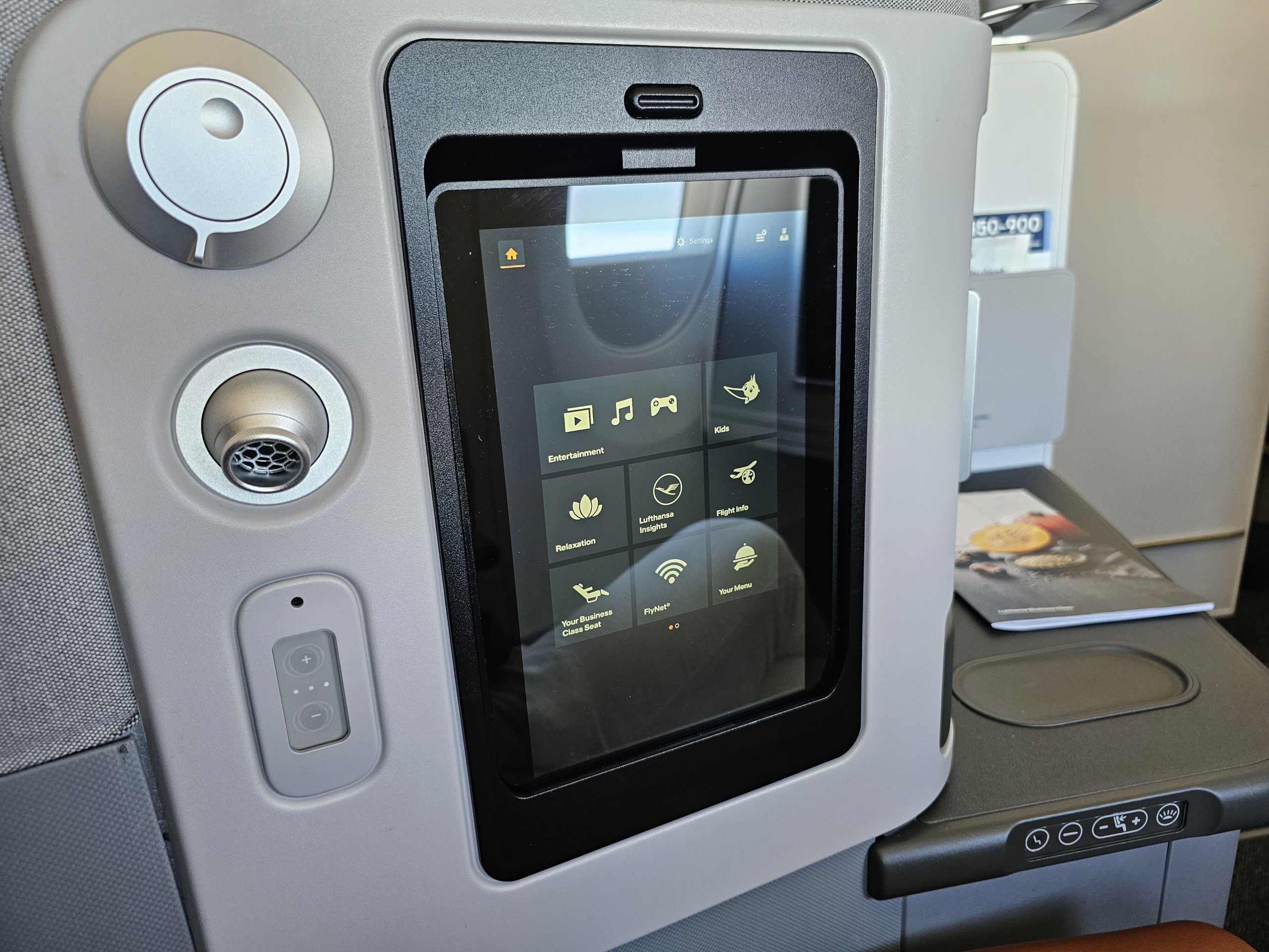 A 4K felbontású monitor nagyszerű. A vezérlés vagy érintőképernyős közvetlenül a monitoron, vagy az ülésen elhelyezett tableten keresztül, így az IFE-t az ülés hátradőlve vagy az ágyból is lehet irányítani.